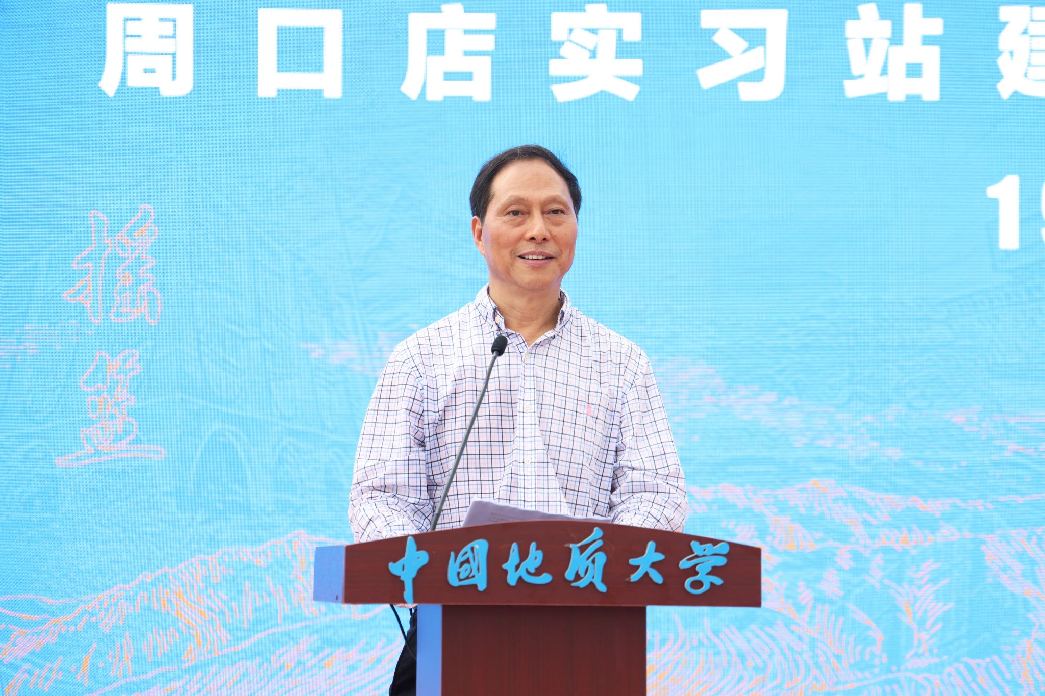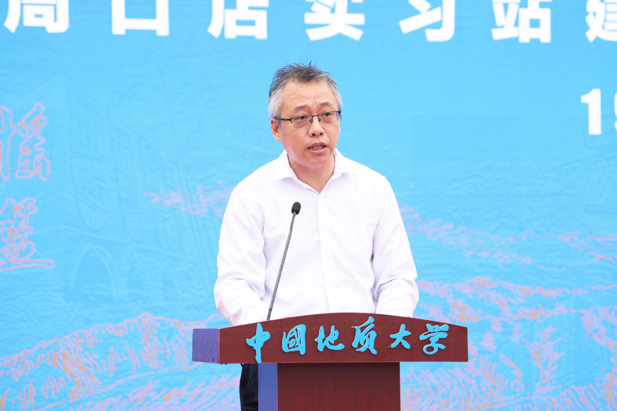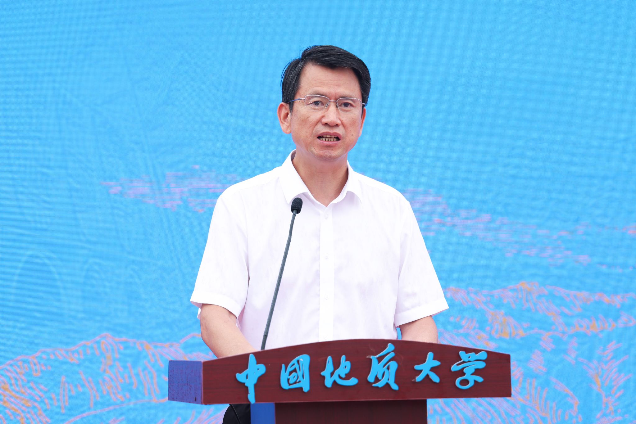 中國地質大學(武漢)校長李建威講話。他代表學校向蒞臨大會的領導和嘉賓表示熱烈歡迎,向長期扎根野外教學一線、為我國地學人才培養付出辛勤勞動、作出重要貢獻的廣大教職員工表示崇高敬意和衷心感謝。