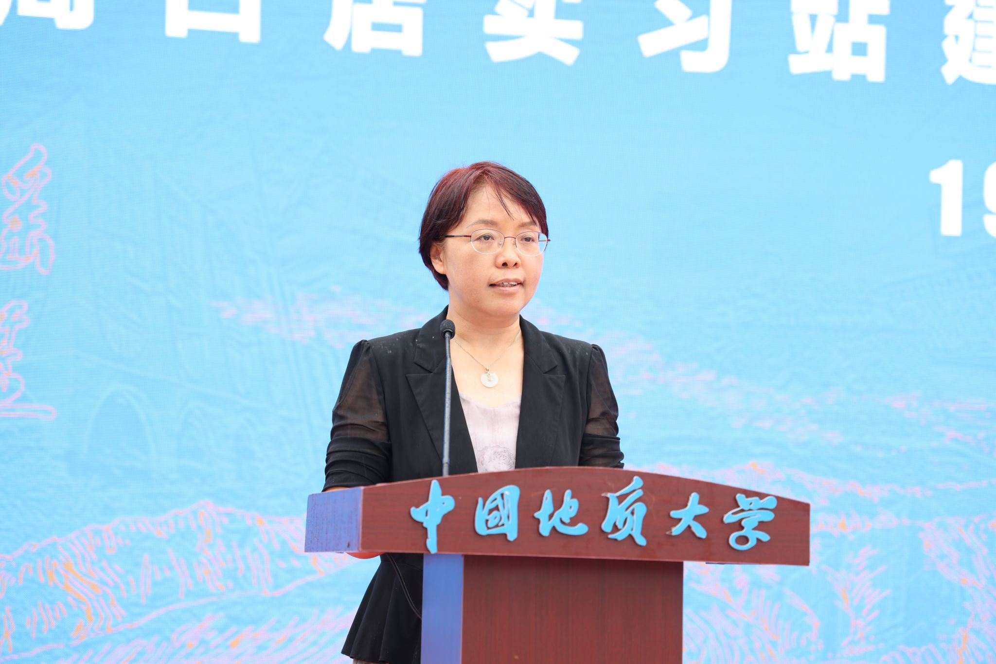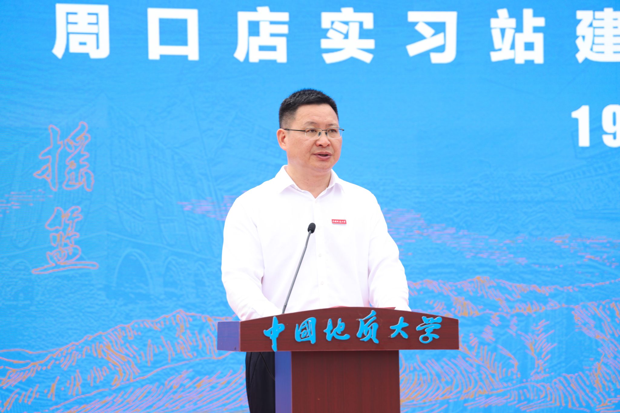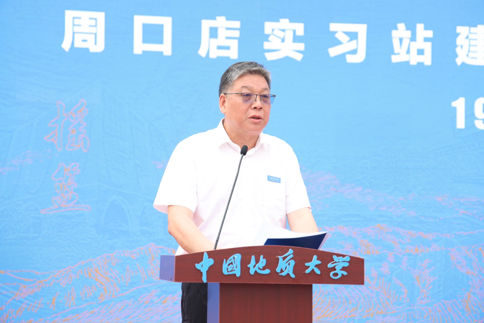 中國地質大學(武漢)校長李建威講話。他代表學校向蒞臨大會的領導和嘉賓表示熱烈歡迎,向長期扎根野外教學一線、為我國地學人才培養付出辛勤勞動、作出重要貢獻的廣大教職員工表示崇高敬意和衷心感謝。