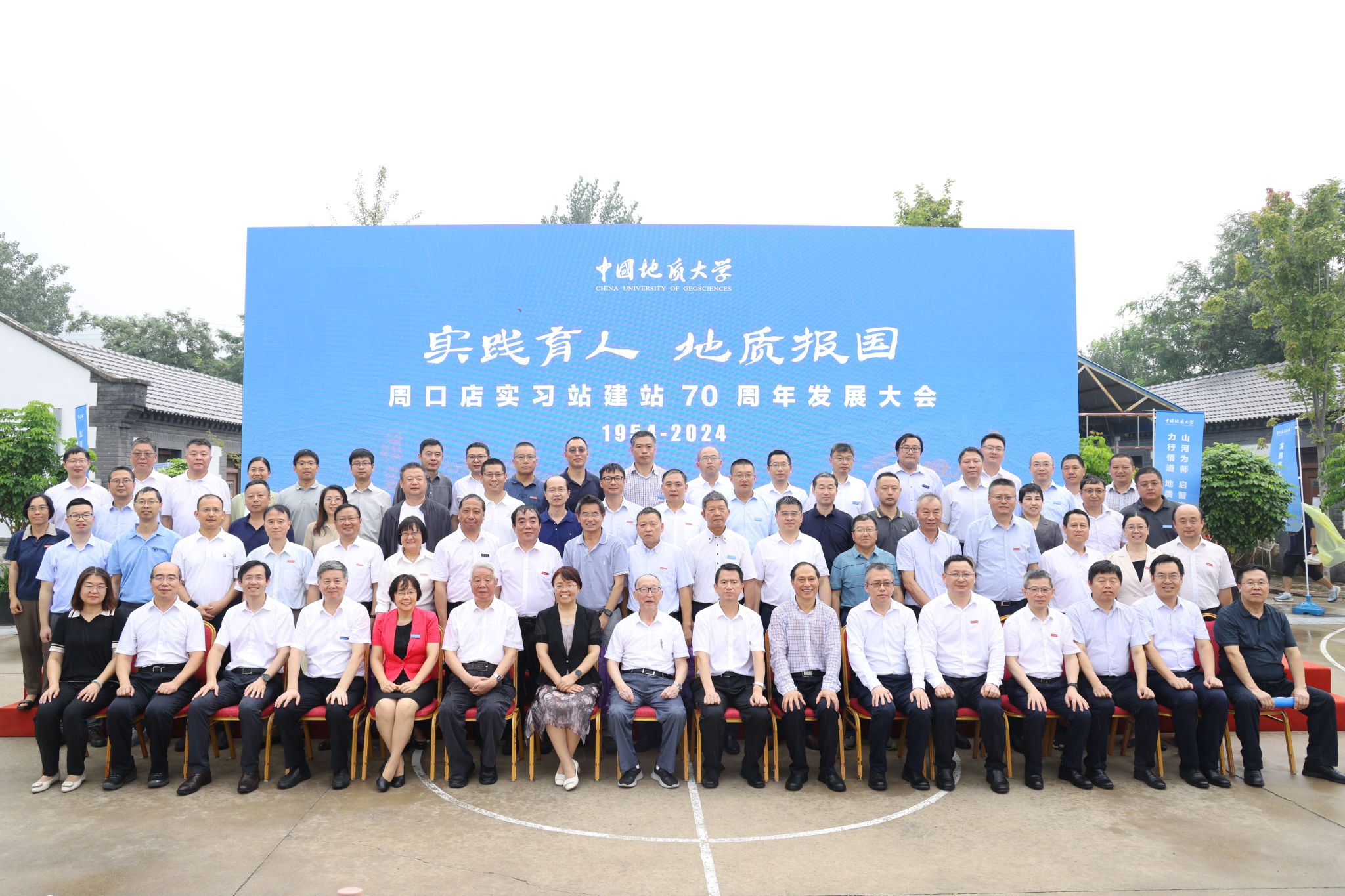 地大新聞網訊 (記者 王俊芳 孫彥欽 焦思勤)8月9日,中國地質大學周口店實習站建站70周年發展大會在周口店實習站舉行。中國科學院院士、中國地質大學教授殷鴻福、金振民,中國工程院院士、中國地質大學(北京)校長孫友宏,中國工程院院士、寧波大學教授杜時貴,教育部高等教育司副司長高東鋒,自然資源部中國地質調查局黨組成員、副局長顏成義,北京市房山區副區長鄭海濤,北京市房山區文化和旅游局局長梁義國,北京市周口店鎮副鎮長張淑娟,北京城建集團總工程師李久林,北京建機資產經營有限公司黨委書記、執行董事王海濤,北京建機資產經營有限公司黨委副書記侯濤,南京大學副校長陸現彩,成都理工大學副校長曾國強,河北地質大學副校長趙永強,中國地質大學(北京)校領導雷涯鄰、林善園、趙志丹,中國地質大學(武漢)校領導劉杰、李建威、王林清,原副校長賴旭龍,黨委常委、黨委組織部部長陳文武,校長助理蔣少涌,教育部、自然資源部、北京市房山區有關部門負責人,北京大學、天津大學、吉林大學、中國礦業大學、中國礦業大學(北京)、中國石油大學(華東)、中國石油大學(北京)、長安大學、西北大學、昆明理工大學等13所兄弟高校相關單位負責人和專家學者,中國地質大學(武漢)、中國地質大學(北京)有關部門和學院負責人、周口店實習站站長代表以及在站實習的師生、媒體記者參加發展大會。