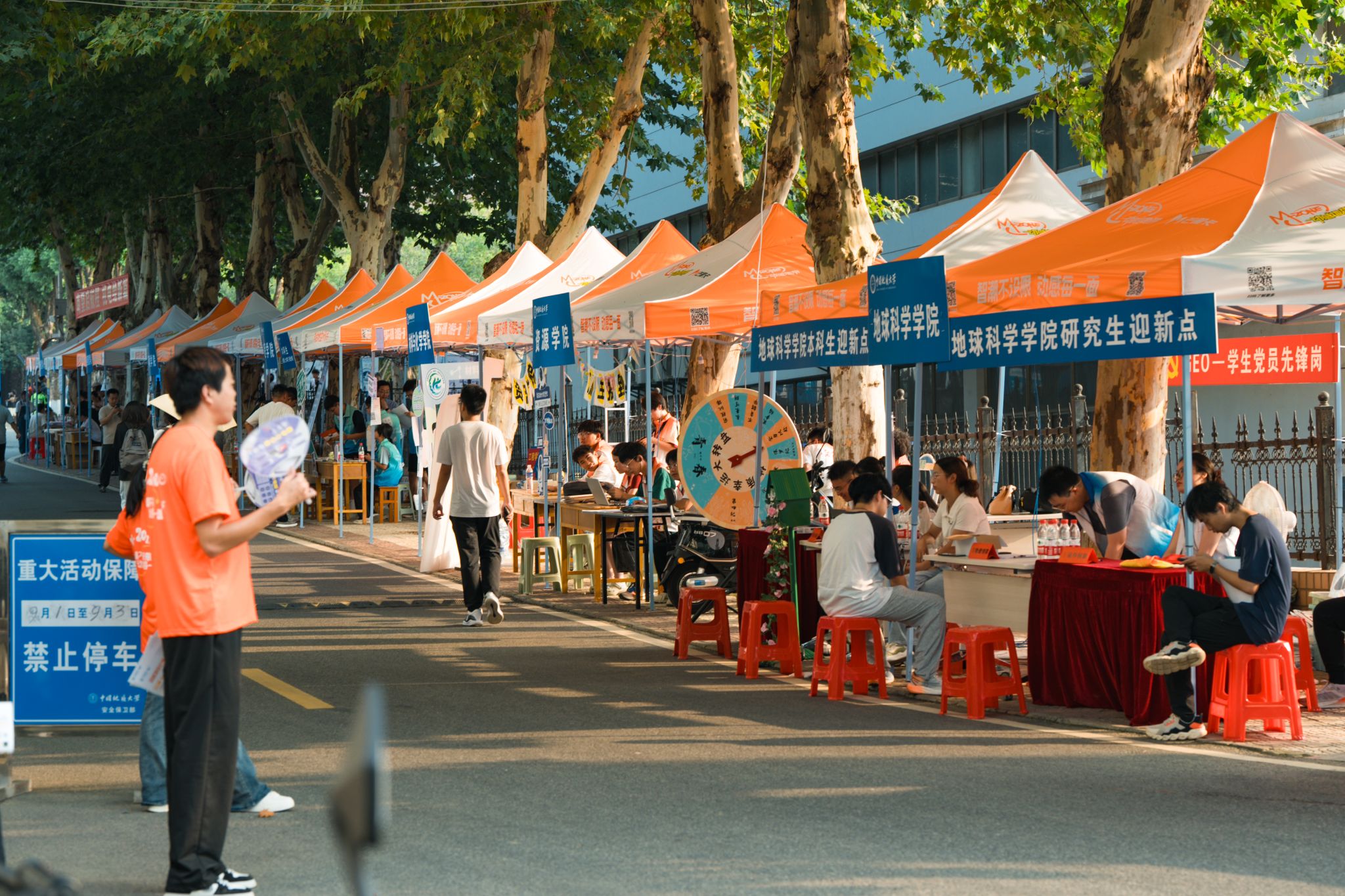 大轉盤、簽名墻、各式小禮品……雖烈日炎炎,但空氣中氤氳著歡樂的氣息。微笑、擁抱、定格,在各學院的迎新報到點,大家把美好記憶珍藏。