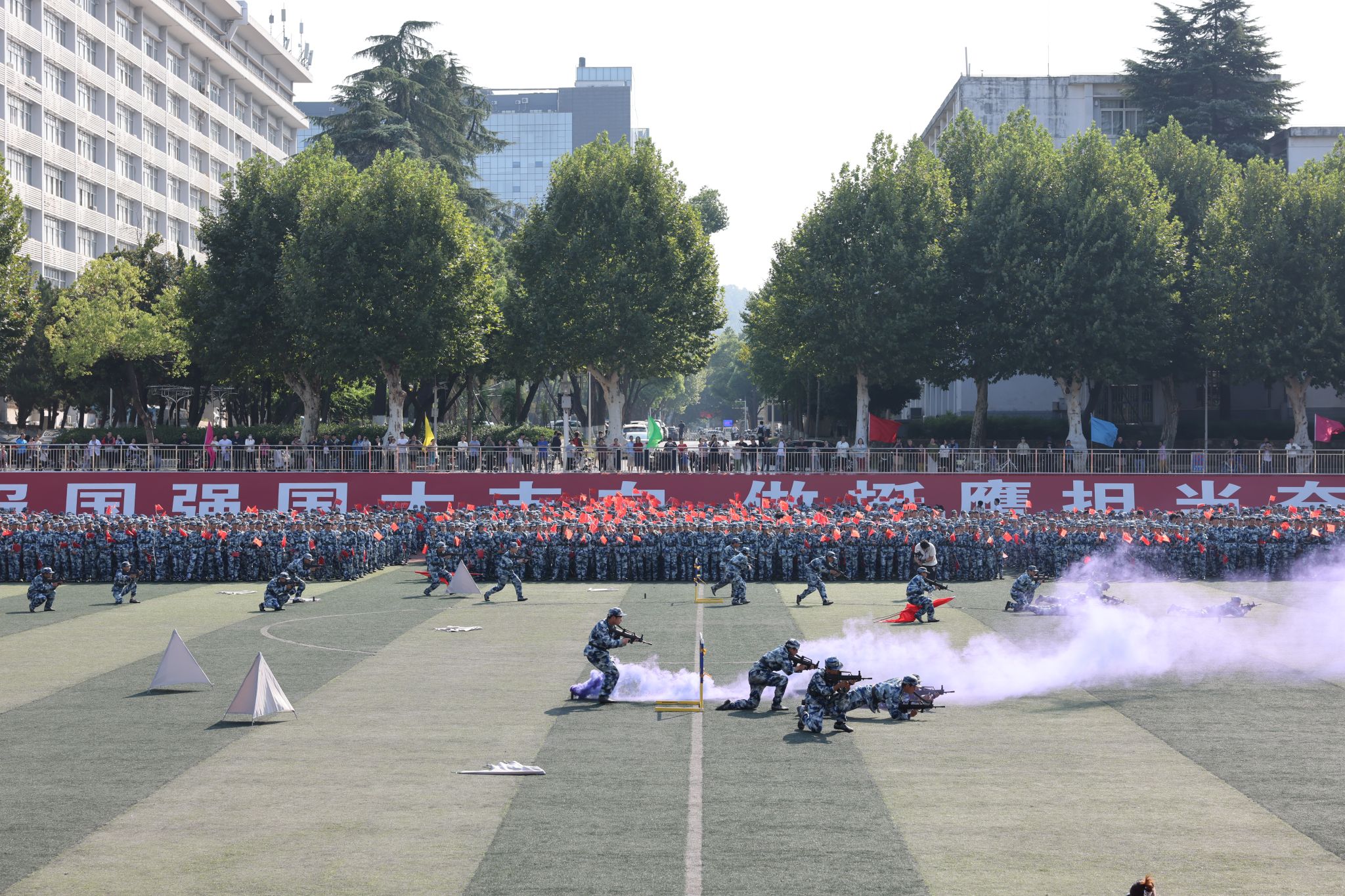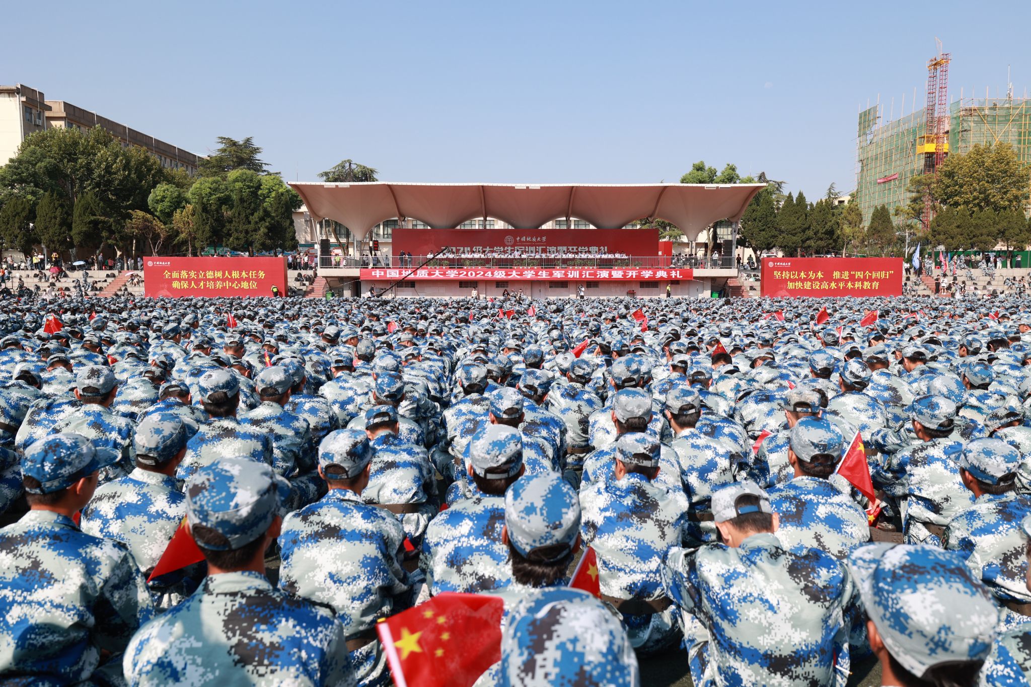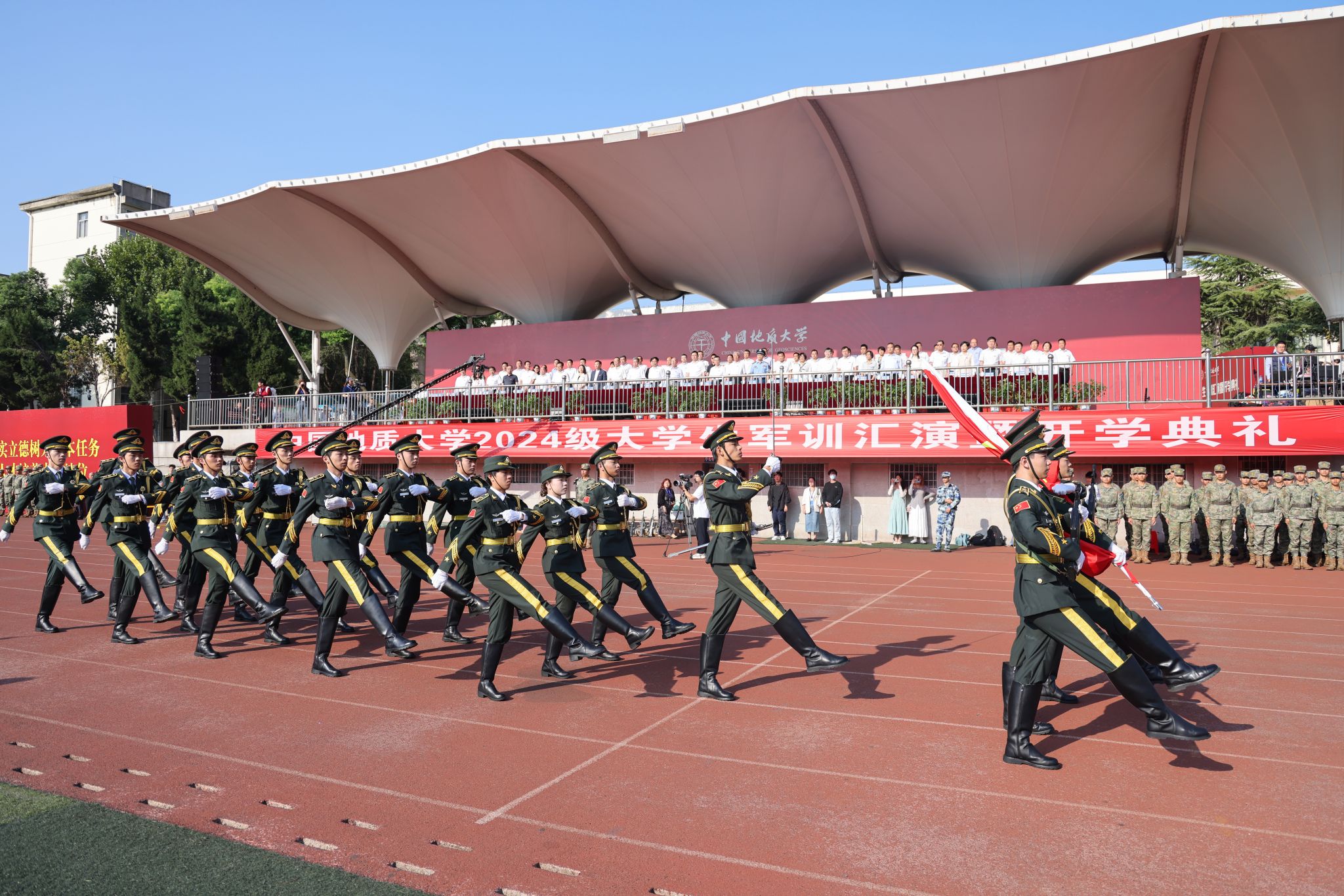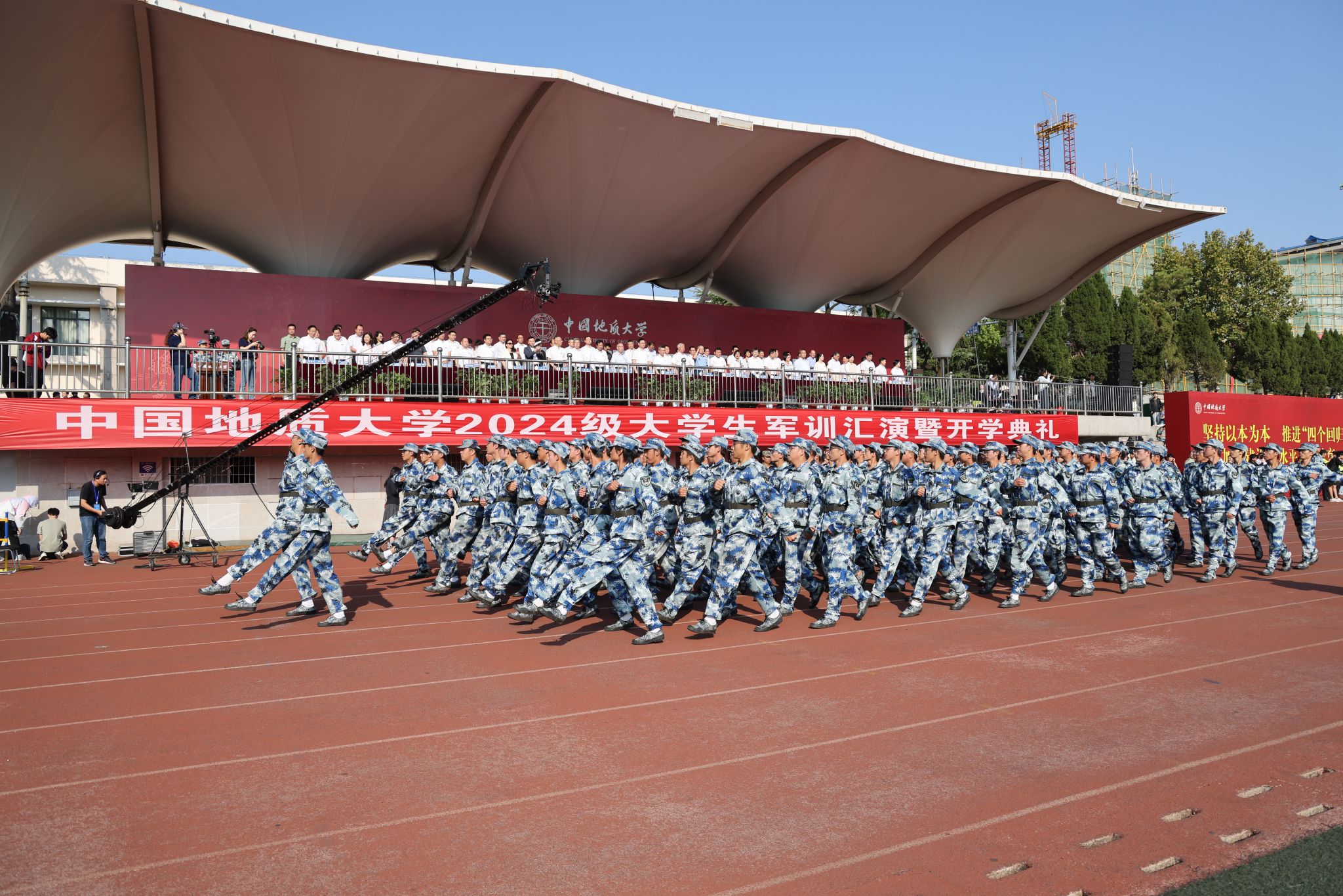 地大新聞網訊 (記者 王俊芳 孫彥欽 焦思勤 梁睿華 學生記者 樊叢蓉)9月22日,我校2024級大學生軍訓匯演暨開學典禮,在南望山校區西區操場舉行。校黨委書記劉杰,校長李建威,中國科學院院士殷鴻福、金振民,教育部直屬高校黨建工作聯絡員謝守成,空軍預警學院學員四大隊政治委員尹斌上校,副校長王華,黨委副書記王林清,黨委副書記、紀委書記唐忠陽,黨委副書記王甫,黨委常委、黨委組織部部長、統戰部部長陳文武,教師代表、環境學院教授馬瑞,校友代表、深圳貝仕達克股份有限公司董事長肖萍,卓越工程師學院理事單位代表、奕龍(信通)集團董事長李清文,各教學科研機構、管理服務機構負責人,輔導員,高年級學生代表及2024級全體本科新生參加典禮。