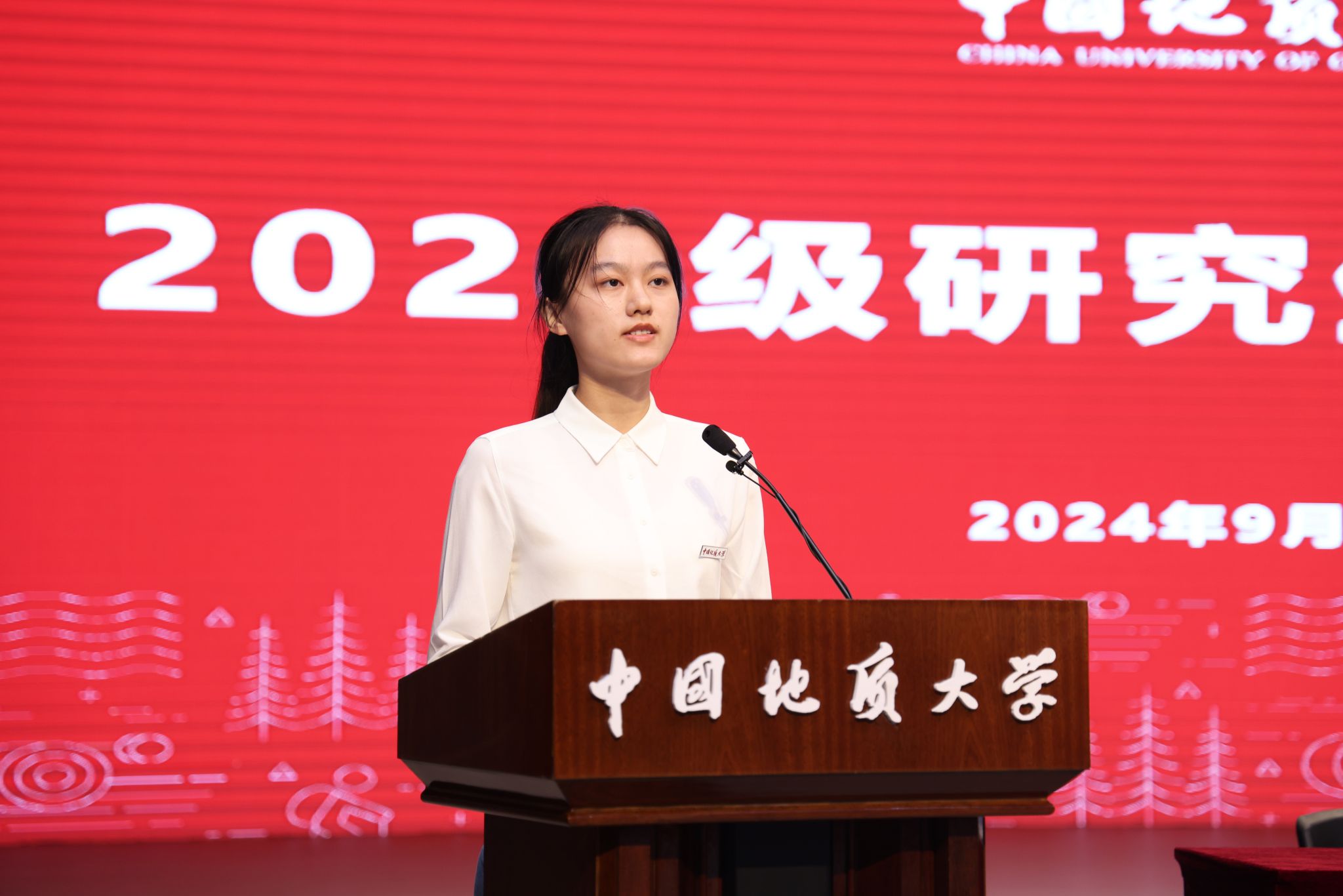 研究生新生代表、公共管理學(xué)院土地資源管理專業(yè)2024級碩士研究生張雪榆同學(xué)發(fā)言。跨越七百多公里,從西子湖畔的浙江大學(xué)來到了東湖之濱的地大,她感嘆緣分的奇妙。她表示,將繼承和發(fā)揚(yáng)地大“艱苦樸素、求真務(wù)實(shí)”的校訓(xùn)精神,在地大這片沃土上茁壯成長,努力為更好地保護(hù)土地資源、促進(jìn)生態(tài)文明建設(shè)貢獻(xiàn)自己的力量。