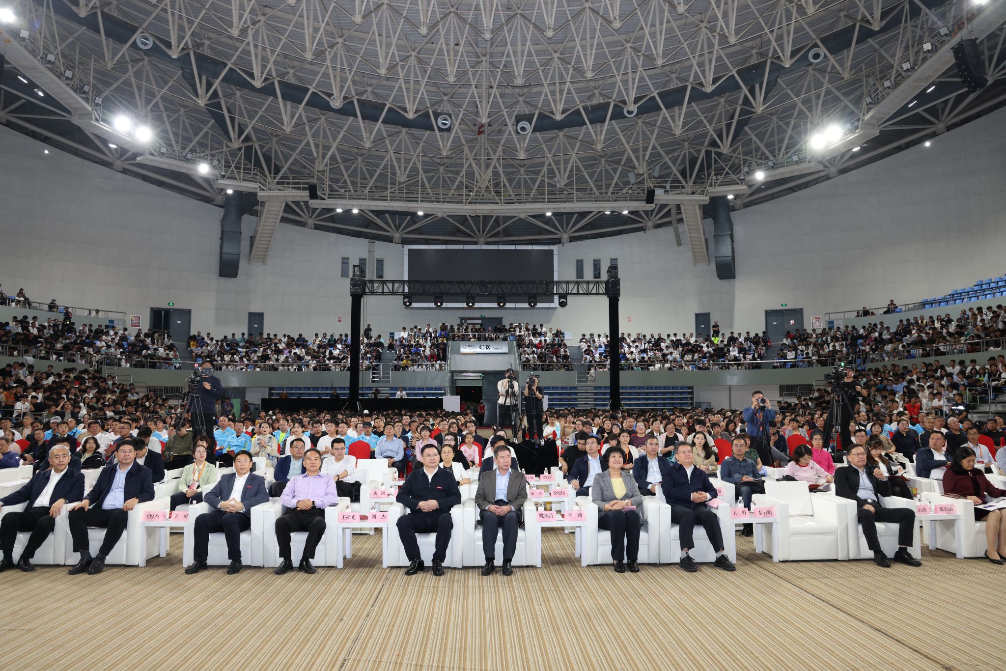 10月17日,中國科協(xié)宣傳文化部二級巡視員姚振清,中國科協(xié)青少年科技中心副主任王松光,山東省科協(xié)二級巡視員、秘書長李莉,中國石油大學(xué)(華東)黨委書記王勇、副書記萬云波,中國海洋大學(xué)黨委常委、副校長王厚杰,青島市科協(xié)黨組成員、副主席秦云鵬,我校黨委書記劉杰、副書記王甫等出席活動。中國科協(xié)、省科協(xié)等有關(guān)部門,青島相關(guān)市直單位,科技工作者代表,以及駐青高校師生代表2千余人參加活動。