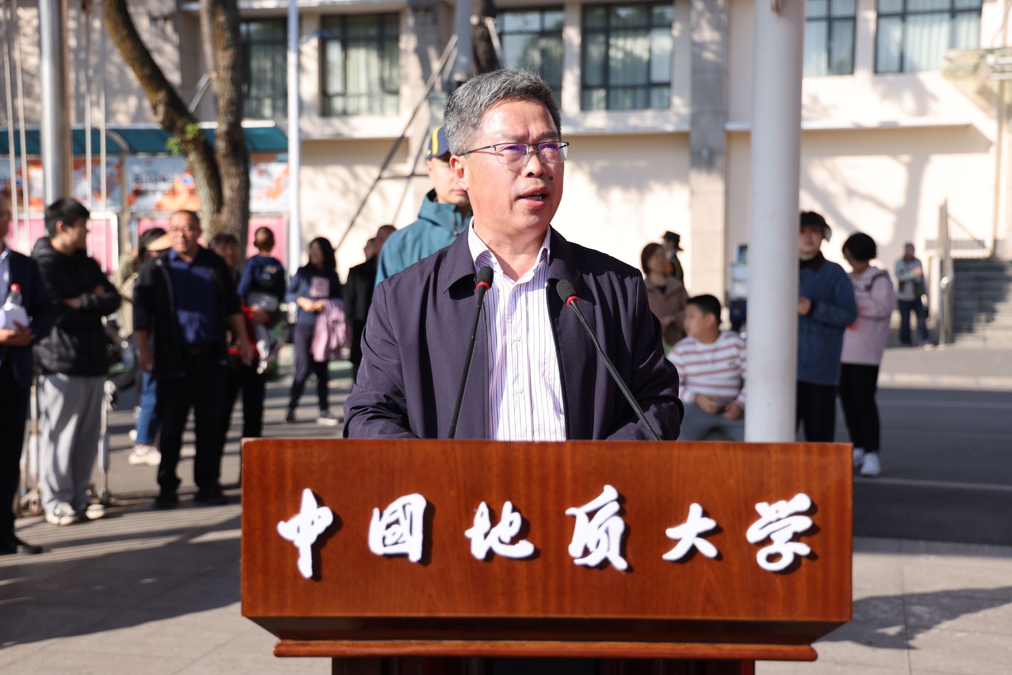 校黨委書記劉杰致開幕辭。他說,運動會是學校體育工作的一場盛會,不僅傳遞著地大的精神特質,更展現著師生的時代風貌。建校70余年來,體育運動與學校的事業發展密切相連,成為地大辦學的一張靚麗名片;與之相隨,為國攀登,也成為地大人共建共享的精神高地。他回顧了學校在登山、群眾體育與體育專業教育、競技體育等方面取得的驕人成績,強調弘揚地大“攀登精神” ,希望師生們在體育運動中強健體魄、追求卓越,朝著更快、更高、更強、更團結的目標不斷進發,為學校早日建成地球科學領域世界一流大學不懈奮斗。