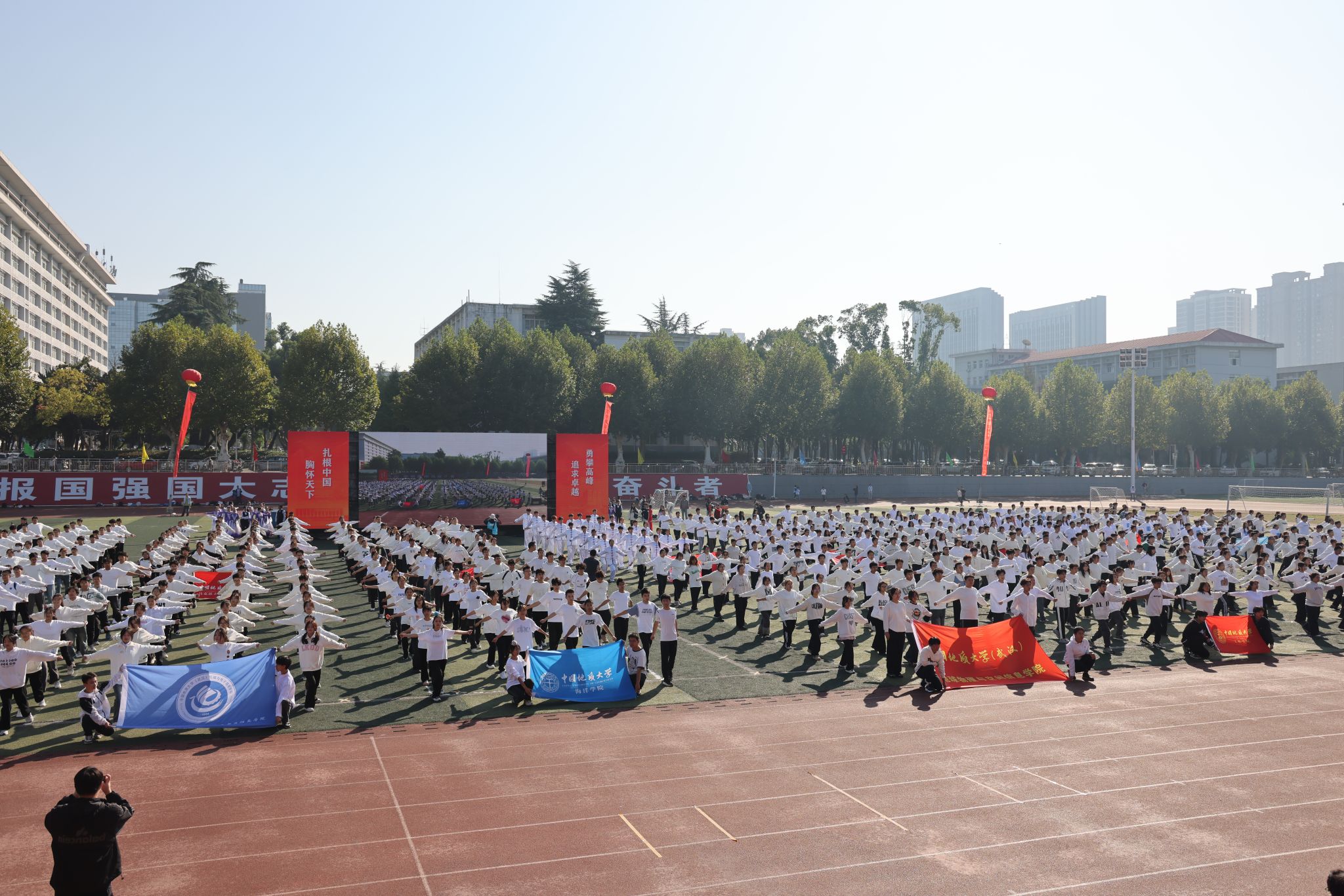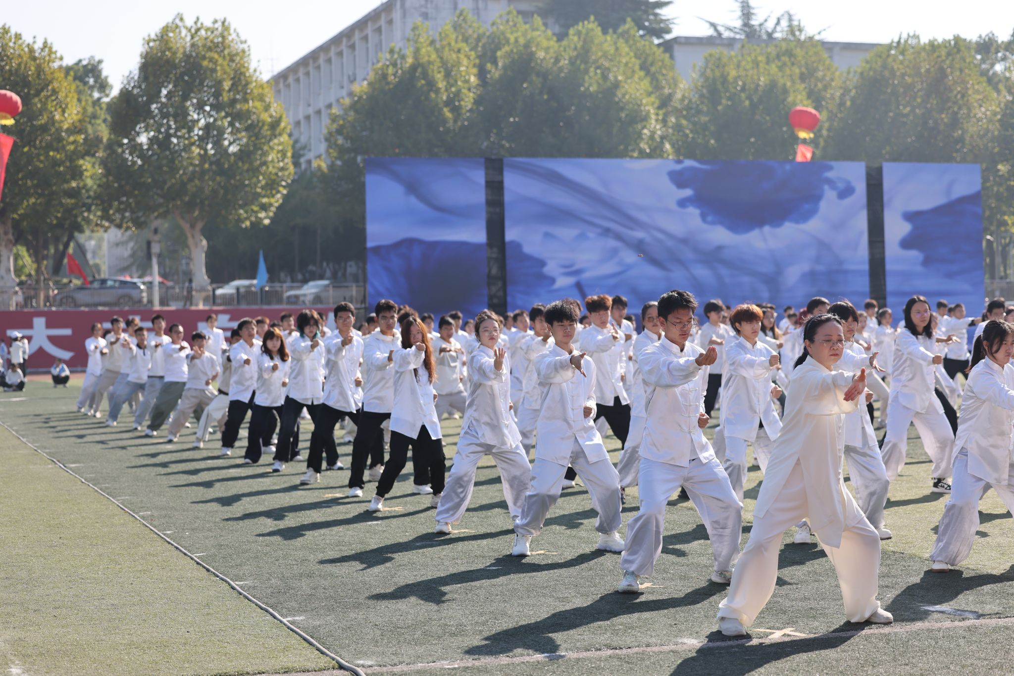 來自22個院系、校工會太極拳協會以及5個職能部門300余名師生帶來《師生同練八段錦》。“增強文化自信自強,鑄就社會主義新輝煌。”以獨特的方式展現了文化與健康的緊密結合,為校園生活注入了新的活力,樹立“健康第一”的指導思想,增強師生體質,增進師生之間的情感交流,營造出積極向上、團結和諧的校園氛圍。