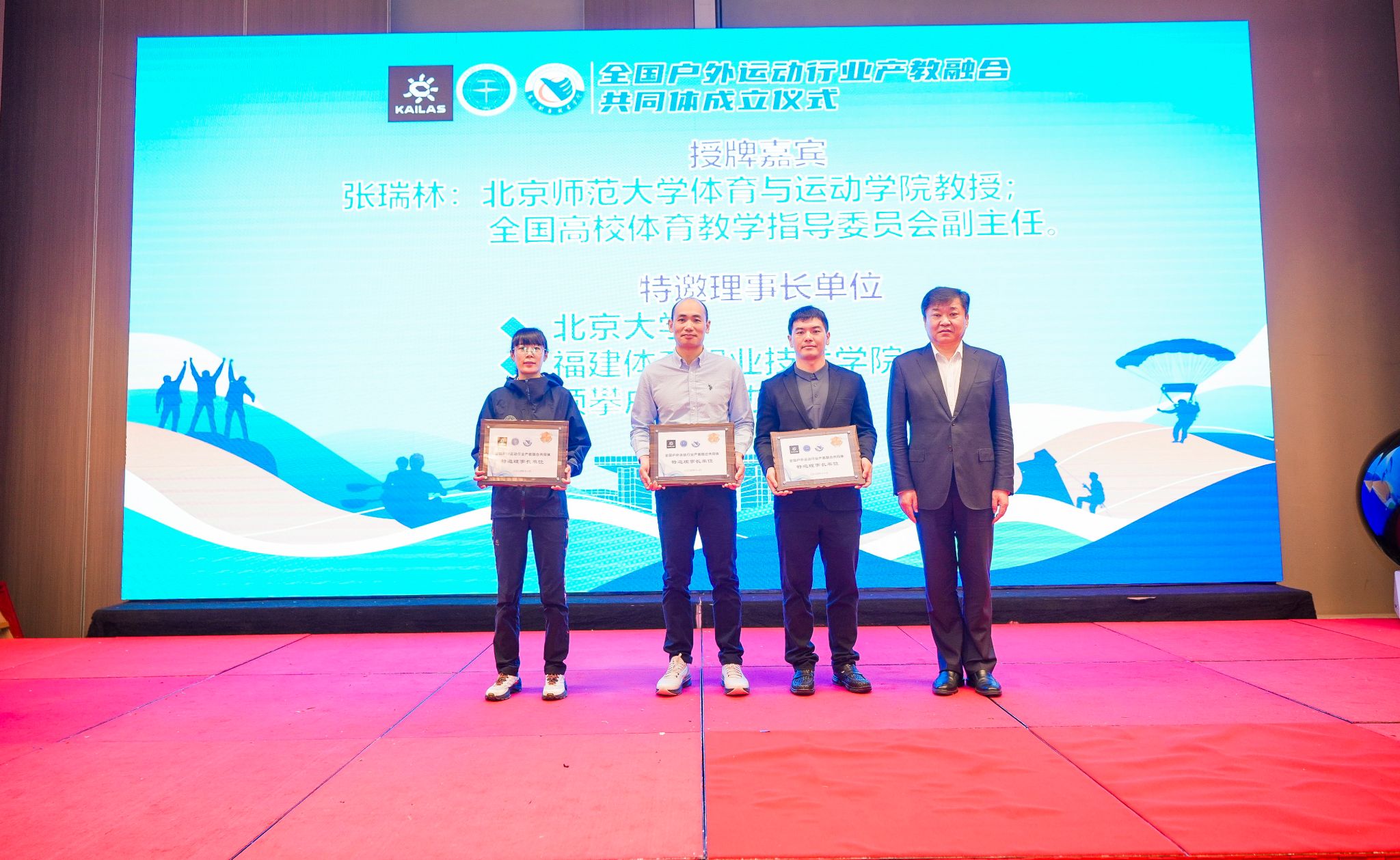 大會審議并通過了《全國戶外運動行業產教融合共同體章程》,并舉啟動儀式。武漢體育學院黨委副書記、校長呂萬剛對理事長單位,北京師范大學教授張瑞林對特邀理事長單位,汕頭大學副校長喻洪、東莞職業技術學院校長賀定修等對副理事長單位進行授牌。