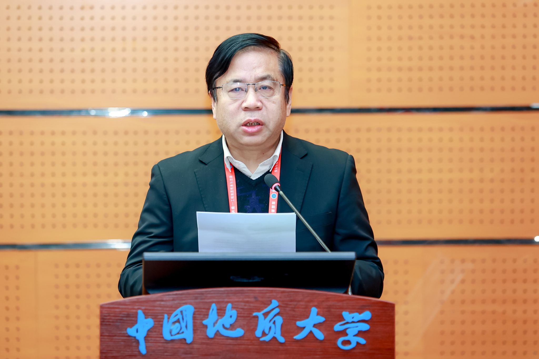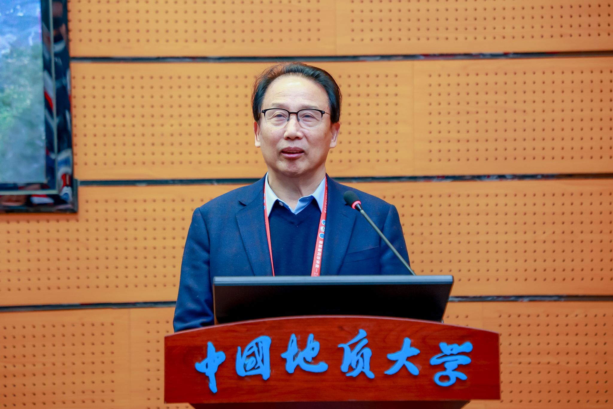 中國工程院院士、寧波大學(xué)杜時貴教授致辭。他追憶了自己在地大求學(xué)、工作期間與晏同珍先生接觸所感受到的大師風(fēng)范,表達了對先生的深切緬懷與崇高敬意。他號召與會學(xué)者以晏同珍先生為榜樣,在科學(xué)研究中銳意進取,勇攀科學(xué)高峰,推動工程地質(zhì)學(xué)科理論與實踐取得新突破。