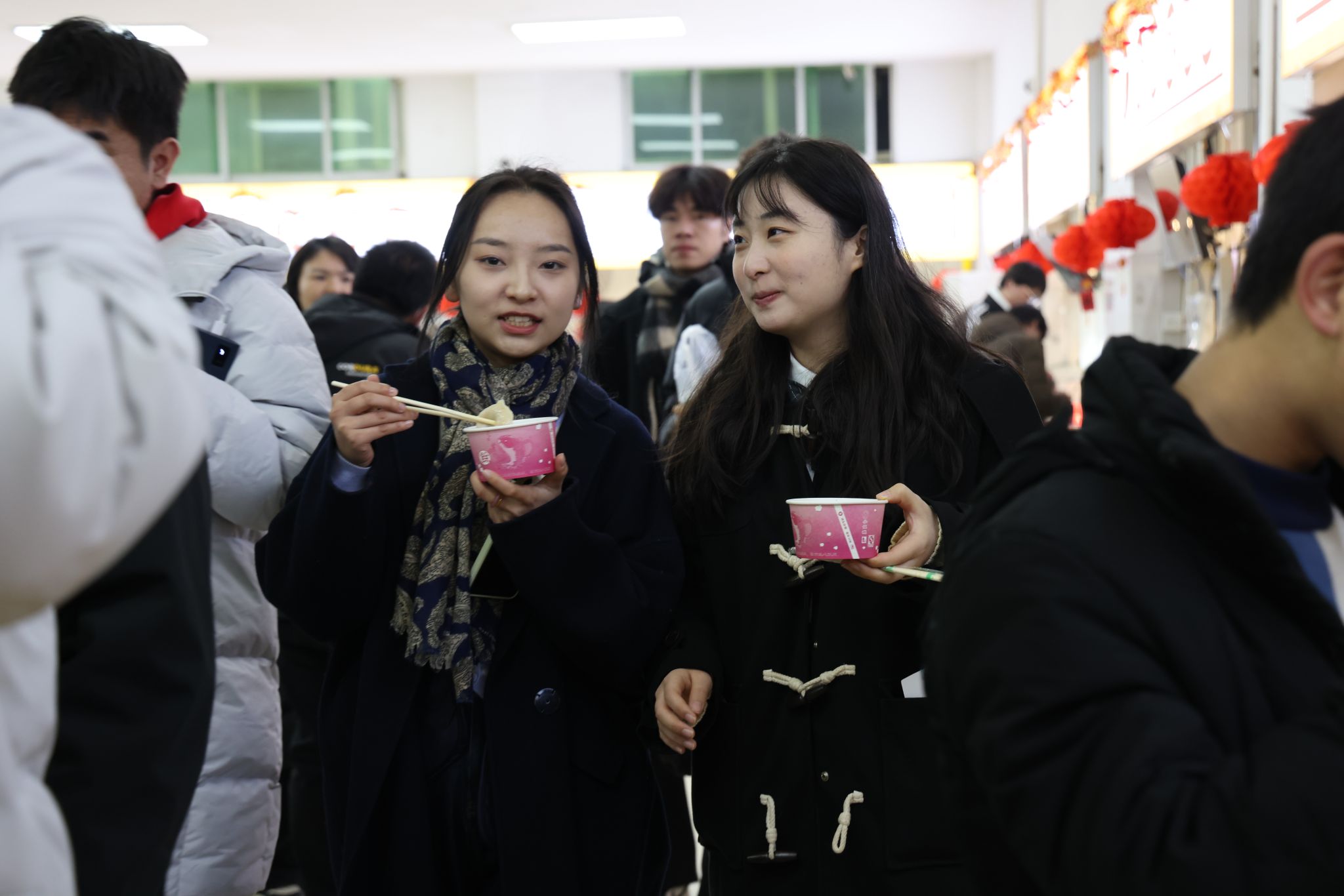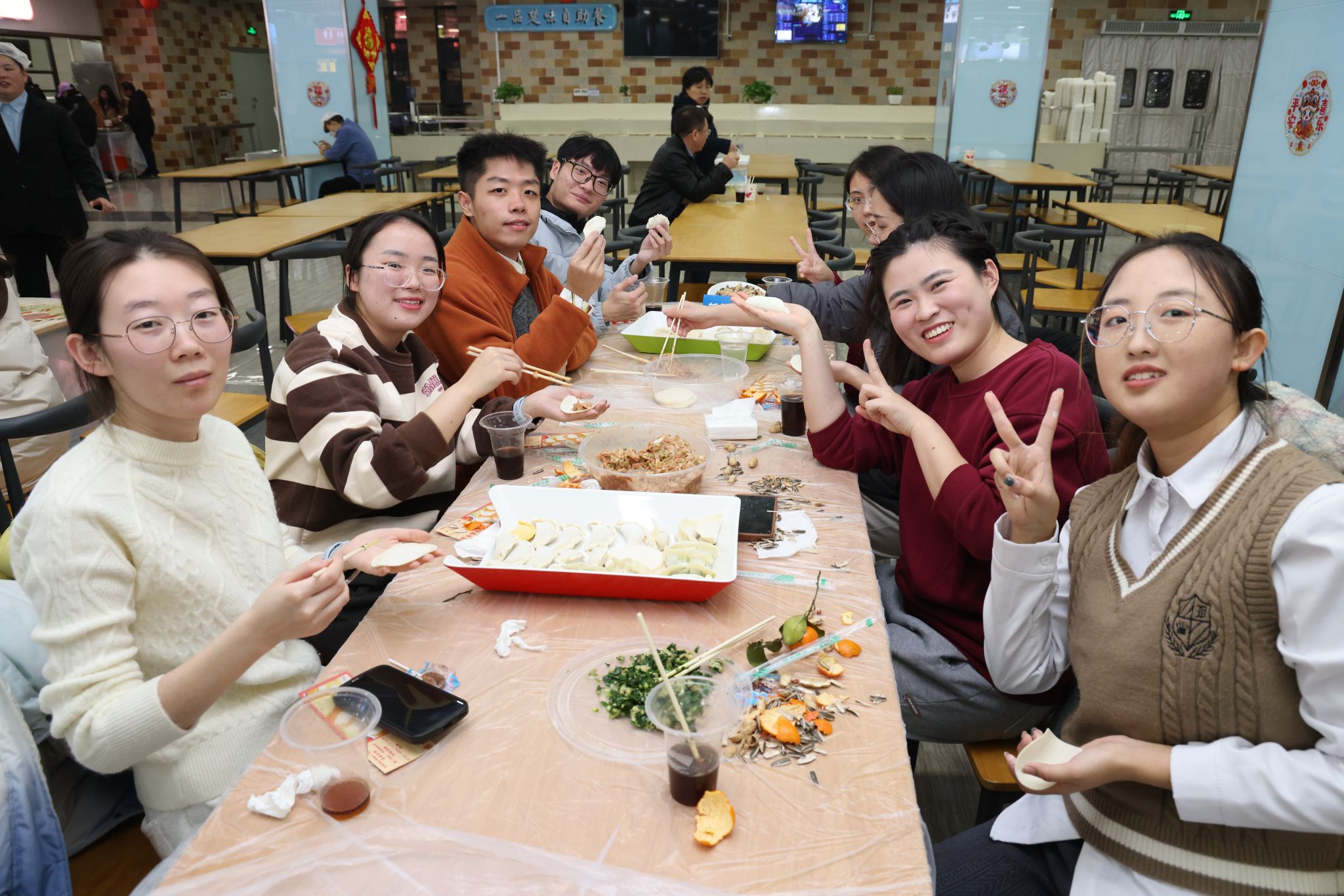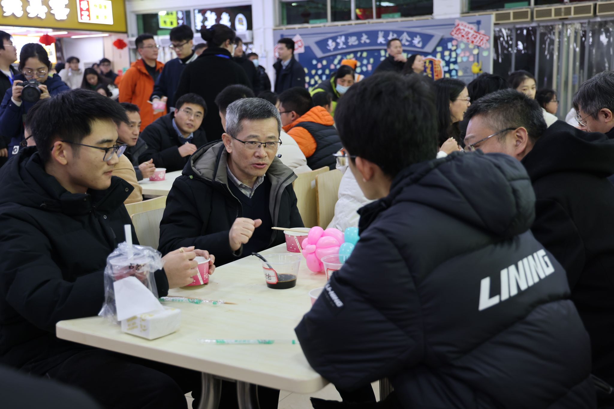 南望山校區學三食堂暖意融融,“深夜食堂”活動開啟,食堂各個窗口都在為師生免費派發新出鍋的餃子。校領導與同學們共同進餐,一份份熱乎乎的餃子,在寒冷的冬天為師生送來溫暖和祝福。
