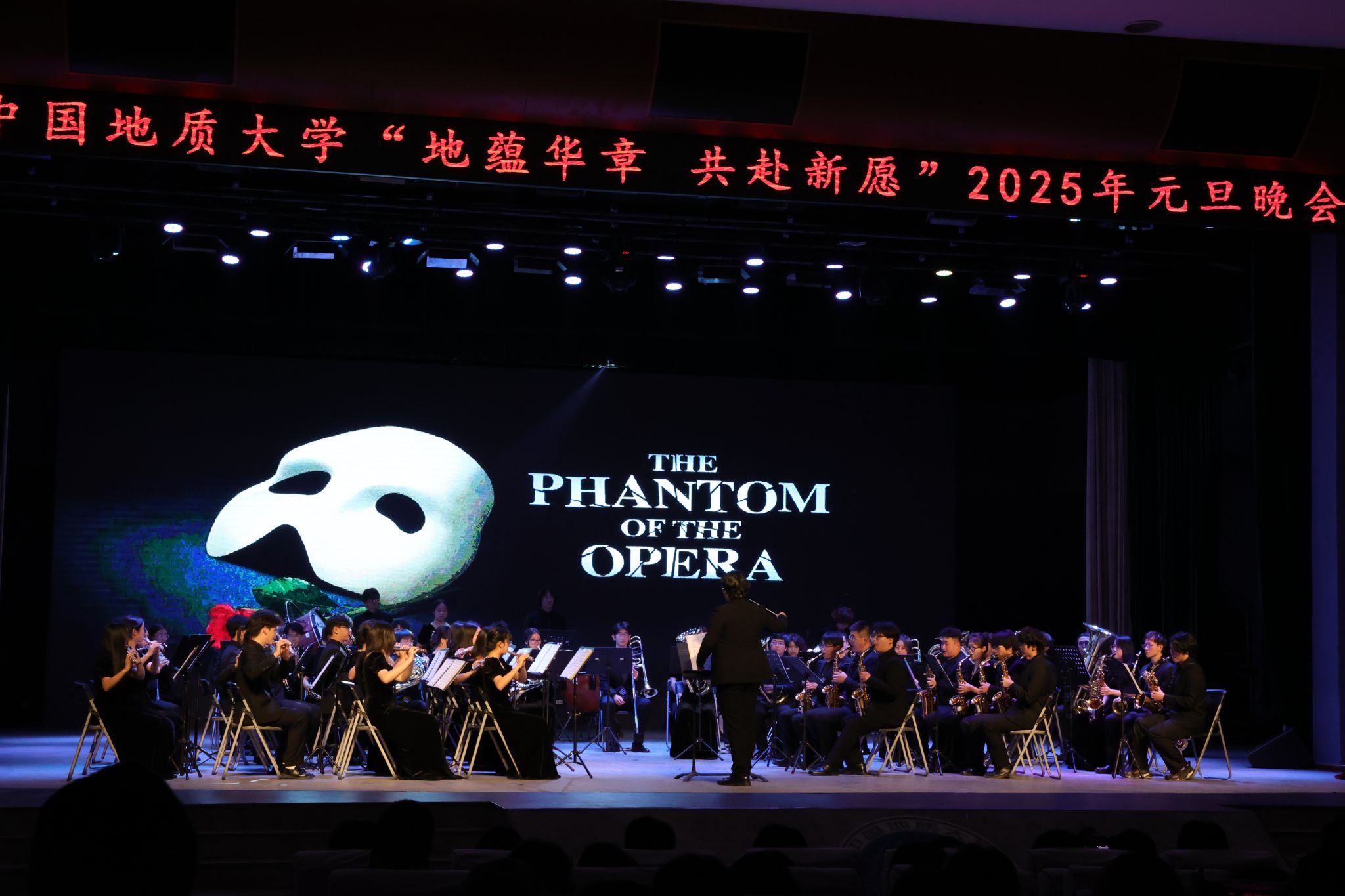 晚七點,“地蘊華章 共赴新愿”2025年元旦晚會在南望山校區弘毅堂舉行。編鐘國樂團以一曲《青青思念》,緩緩拉開了晚會的序幕;湖北省武術隊的《武術表演》行云流水、氣吞山河,一伸一張盡顯中華精神;NDS街舞社《New Dance Soul》以炫酷的動作、默契的配合打造出一場視覺盛宴。圖書檔案與文博部帶來的《書香年華》緩緩展開地大人勤奮刻苦、孜孜不倦投身書海的學習畫卷;子非魚戲劇社《小品的世界》向大家展示荒誕與搞怪、愛與溫暖;舞蹈團《唐宮夜宴》詼諧靈動,既有宮廷的端莊優雅,又不失少女的俏皮活潑;軍樂團帶來史詩級音樂《歌劇魅影》《加勒比海盜》;主持人社《向祖國報告》向偉大的祖國表達熱忱愛國之心;歌曲串燒《浮光》《如果可以》《不該》讓人沉醉在優美的歌聲中。