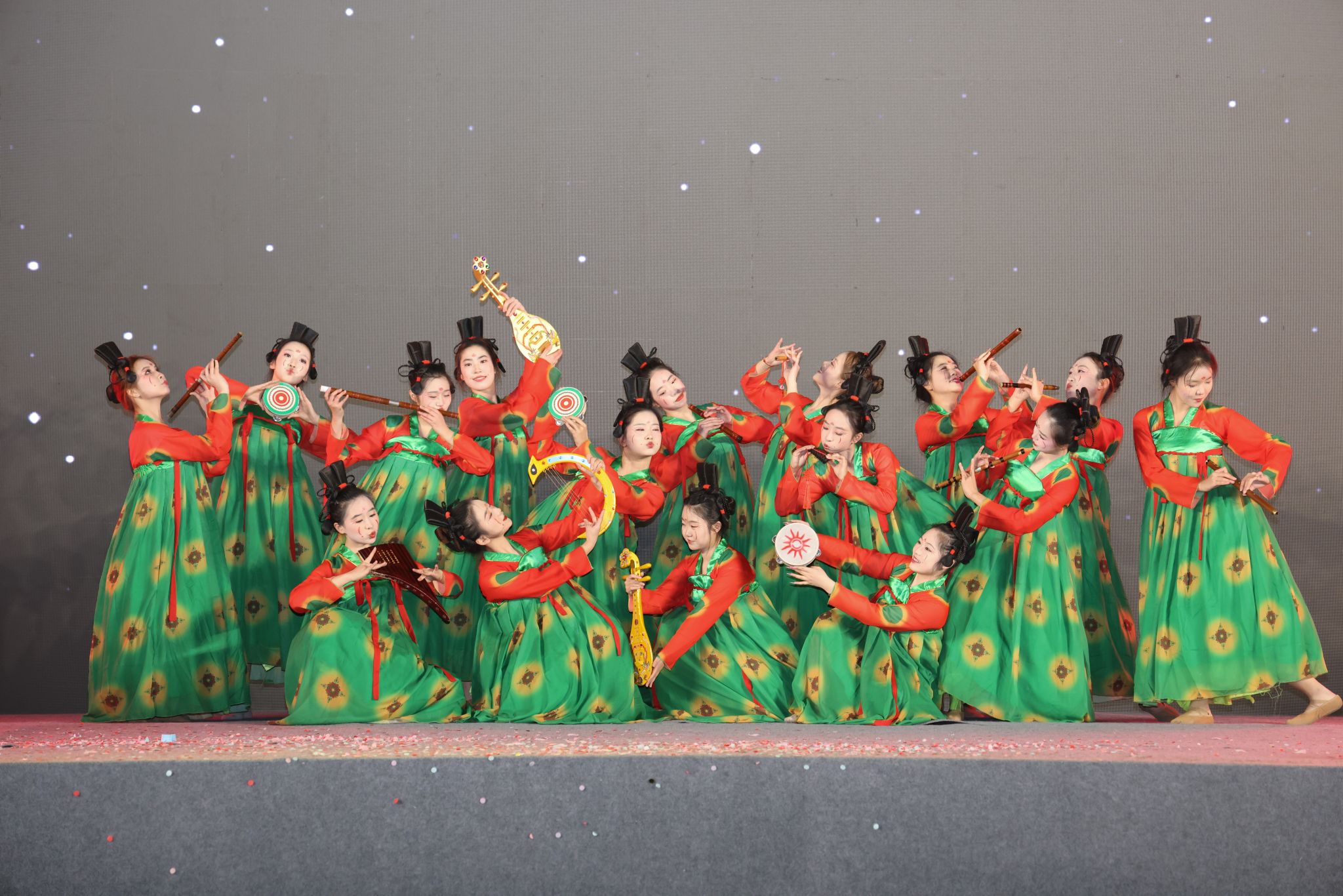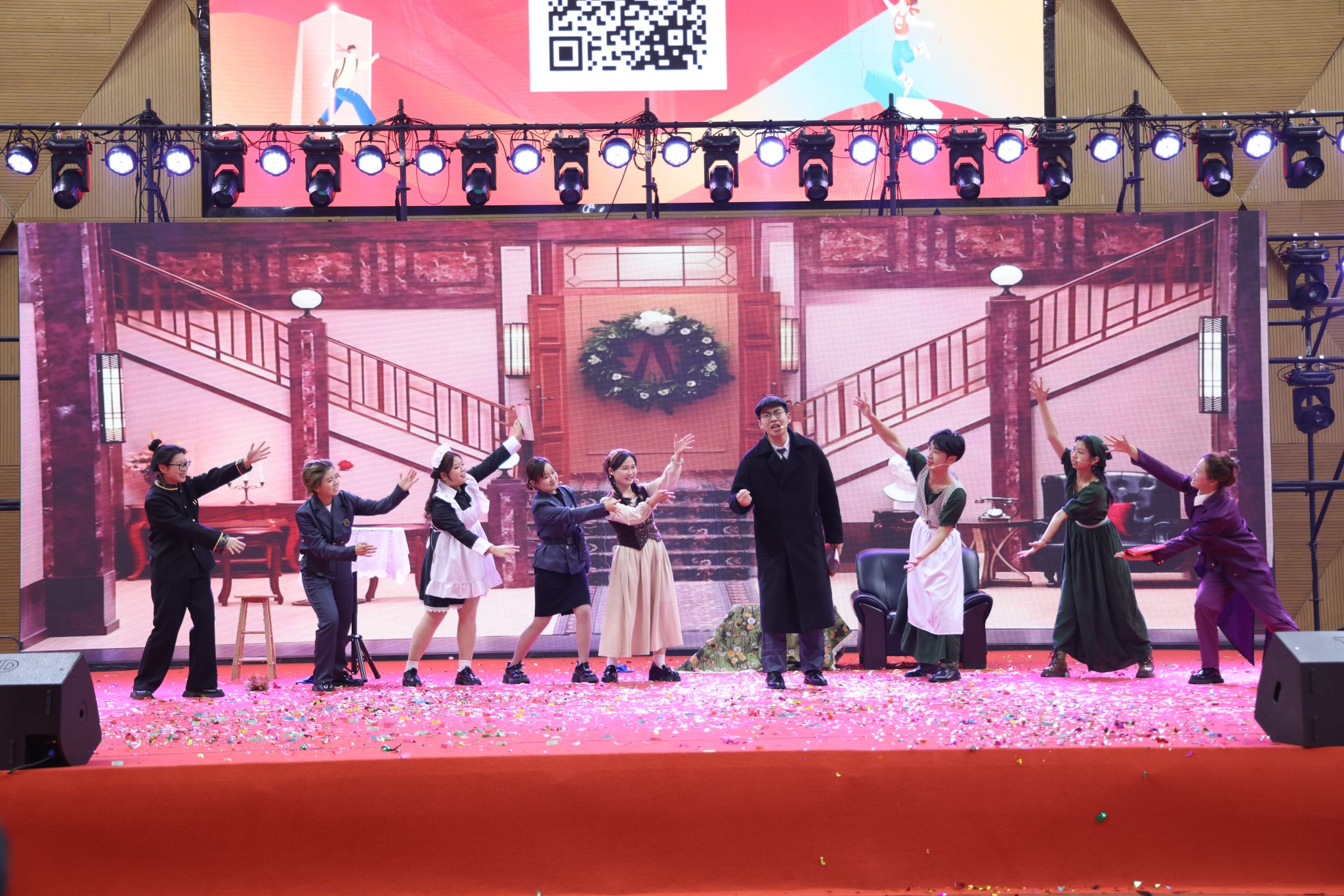 九點,未來城校區師生聯歡會在《萱草花》溫婉的歌聲中悠然開篇。中國地質大學幼兒園的活力舞蹈《向太陽奔跑》閃亮登臺,地馨合唱團演唱《勘探隊員之歌》《上春山》深情回溯過往奮斗征程,金曲串燒《不再猶豫》《光輝歲月》《海闊天空》和街舞社的《TOXIC》喚起師生的青春熱血,將現場氣氛推向高潮。話劇《尤利婭別哭》引領觀眾沉浸于情感與哲思的交融;樂器演奏《山海》《桃花流水》《紅日》激昂澎湃,剛柔并濟,盡展音樂之魅力神韻;舞蹈《晨曦中的玫瑰》輕盈綻放,寓意著希望與美好的來臨;戲曲《師生同上未來梨園》韻味悠長,讓師生領略到戲曲藝術的獨特魅力。
