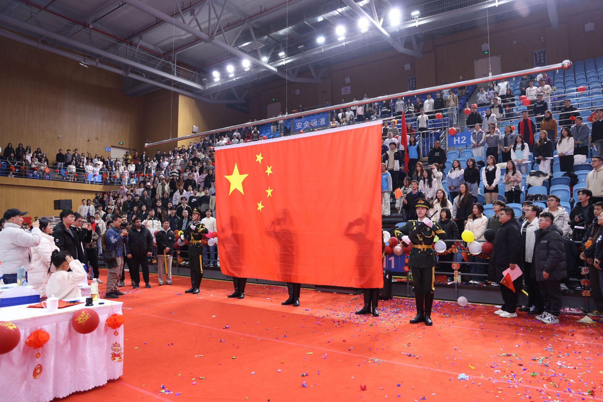 即將迎來2025年零點,南望山校區西區操場和未來城校區體育館人頭攢動,師生們歡聚一堂,“10、9、8、7……”共同喊出倒計時,一同迎接新年的到來,地理與信息工程學院楊偉昕、數學與物理學院陳思穎獲得新年第一人大獎。