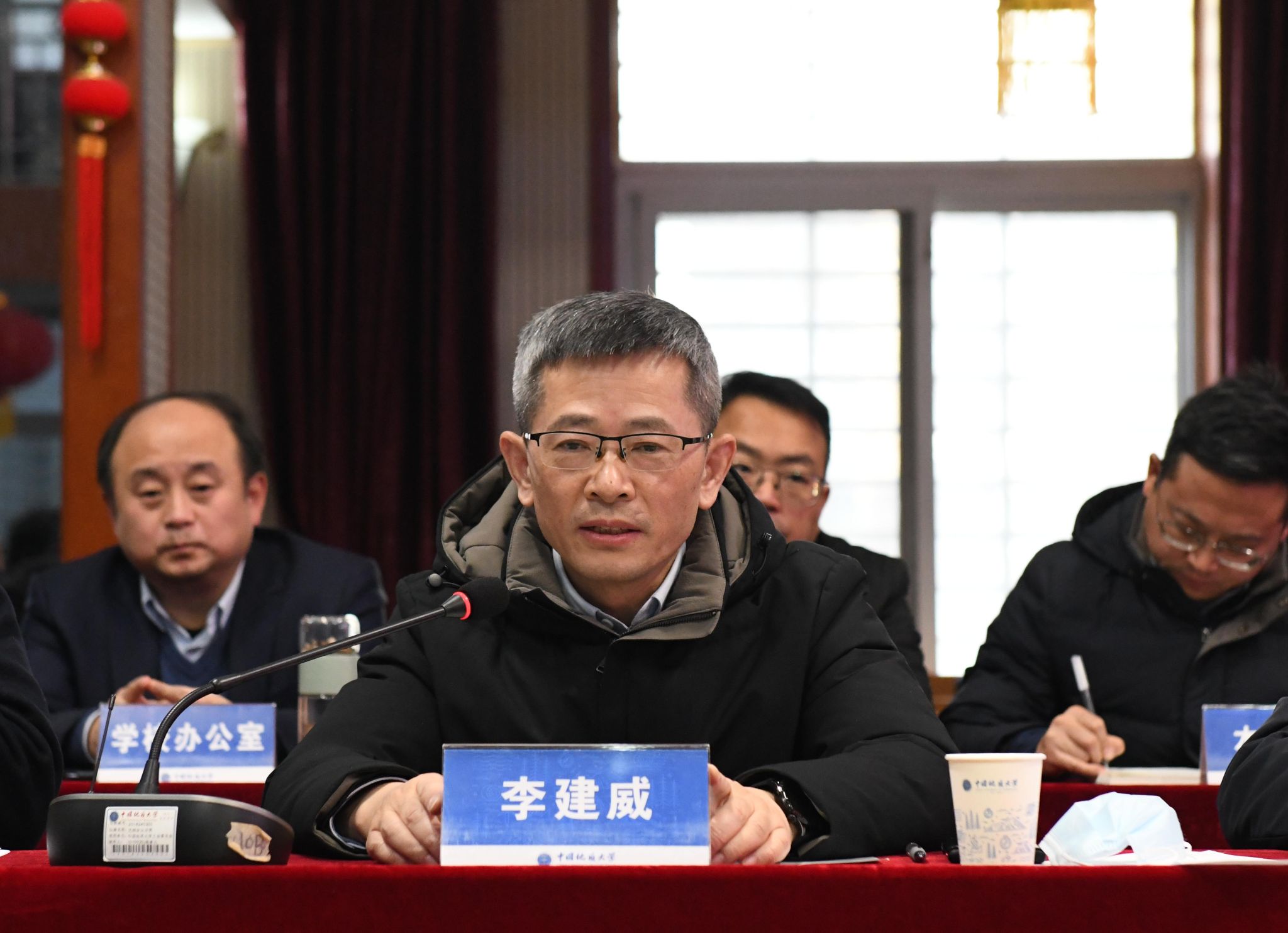研究生院院長趙葵東作高層次人才培養改革專題匯報;人力資源部部長郭上江、后勤保障部部長徐巖、醫院院長謝先才和張瑋分別圍繞會前征集議題作專題發言,匯報本單位2024年度完成的事關教職工切身利益、事關民生的重點工作。