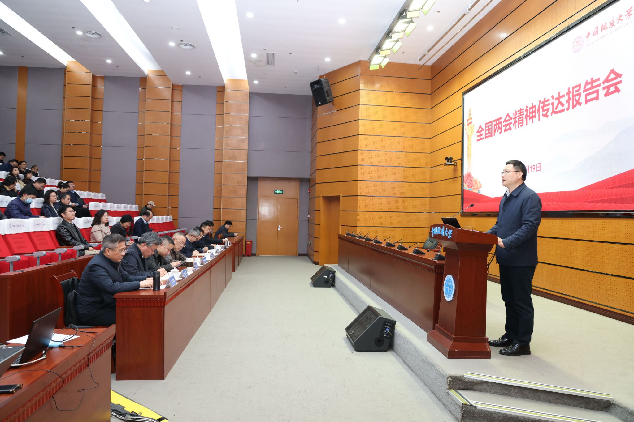 全國(guó)人大代表、中國(guó)科學(xué)院院士王焰新教授,全國(guó)政協(xié)委員童金南教授結(jié)合個(gè)人參會(huì)感受和履職情況,介紹了2025年全國(guó)兩會(huì)的基本概況,深入解讀政府工作報(bào)告、“兩高”報(bào)告、湖北代表團(tuán)和環(huán)境資源界別委員協(xié)商議政情況。兩位代表委員聚焦科技創(chuàng)新與產(chǎn)業(yè)融合、新質(zhì)生產(chǎn)力培育、生態(tài)文明建設(shè)、長(zhǎng)江經(jīng)濟(jì)帶高質(zhì)量發(fā)展、鄉(xiāng)村振興、拔尖創(chuàng)新人才培養(yǎng)、“雙一流”大學(xué)的擔(dān)當(dāng)作為等方面分享了感想體會(huì),并對(duì)學(xué)校高質(zhì)量發(fā)展提出意見建議。