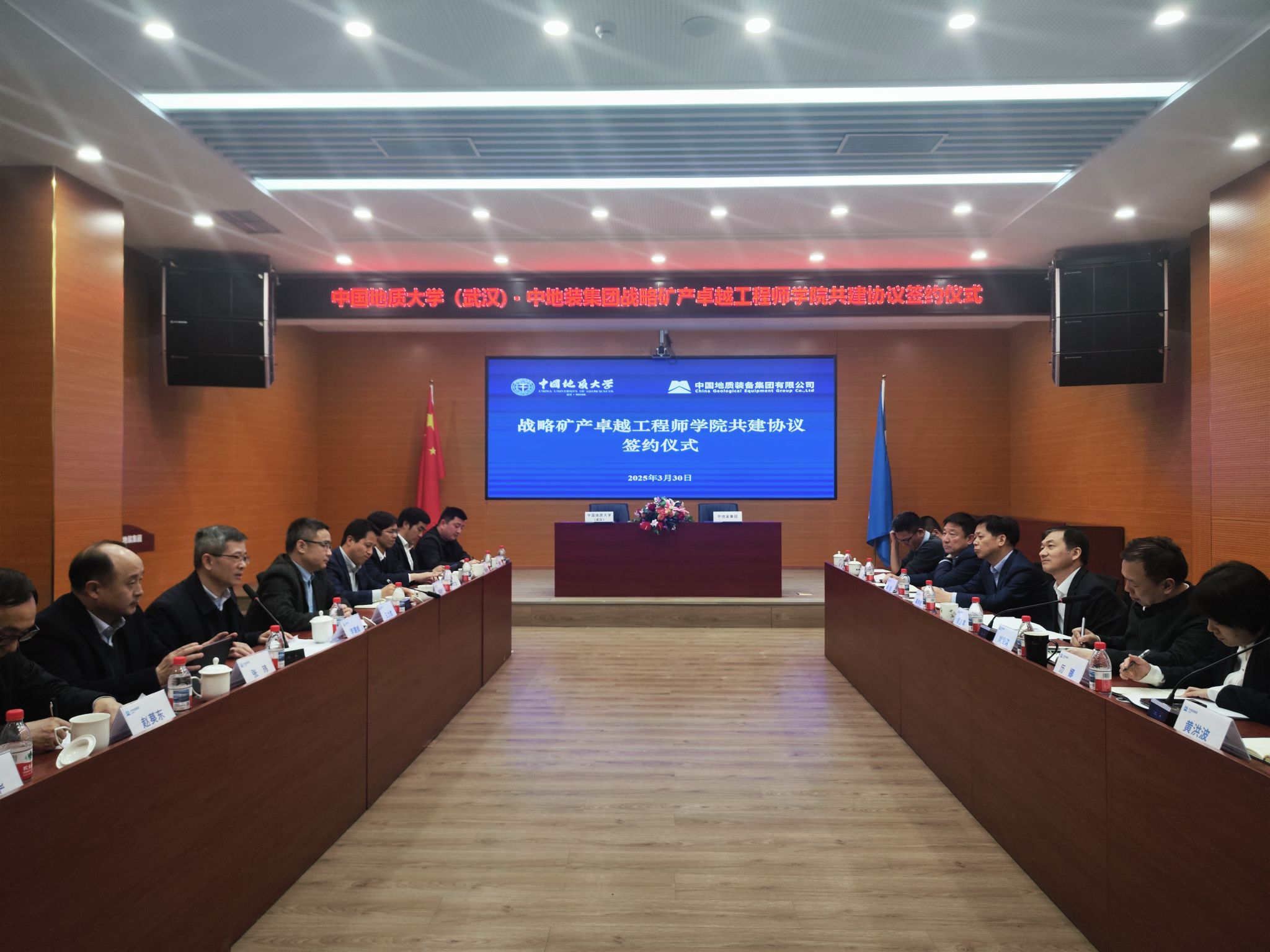 地大新聞網訊 3月30日,我校與中國地質裝備集團有限公司(以下簡稱“中地裝集團”)在北京舉行戰略礦產卓越工程師學院共建協議簽約儀式。中地裝集團黨委書記、董事長權良軍,黨委副書記、總經理劉海濤,副總經理高申友、歷娜;我校校長李建威、副校長王力哲參加簽約儀式。