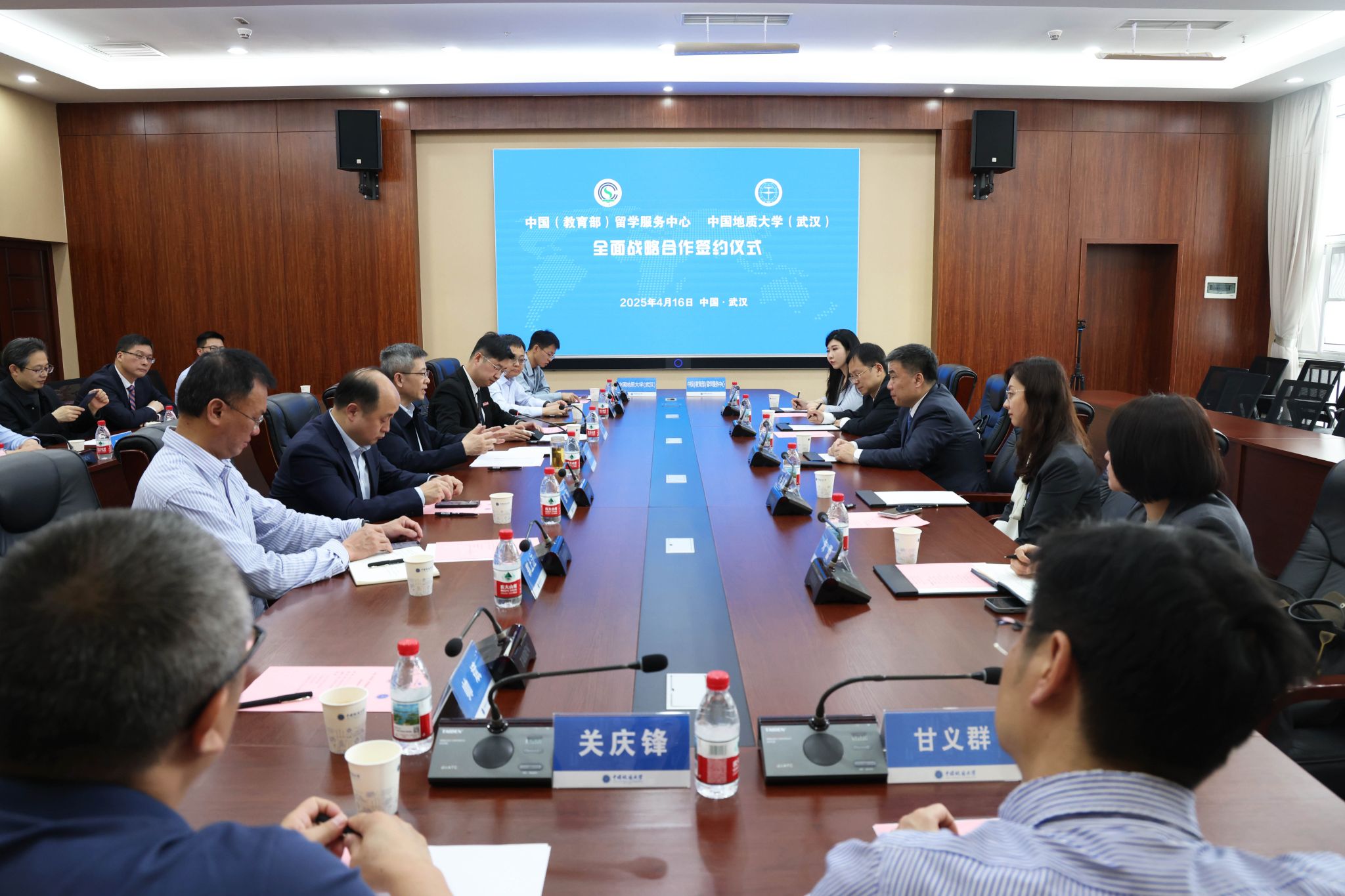 地大新聞網訊 (通訊員 吳思源 許峰 攝影 孫彥欽)4月16日,我校與中國(教育部)留學服務中心(以下簡稱“中留服”)舉行座談并簽署全面戰略合作協議。中留服黨委書記、主任王大泉,我校校長李建威、副校長夏帆,雙方相關單位負責人參加簽約儀式。夏帆主持會議。