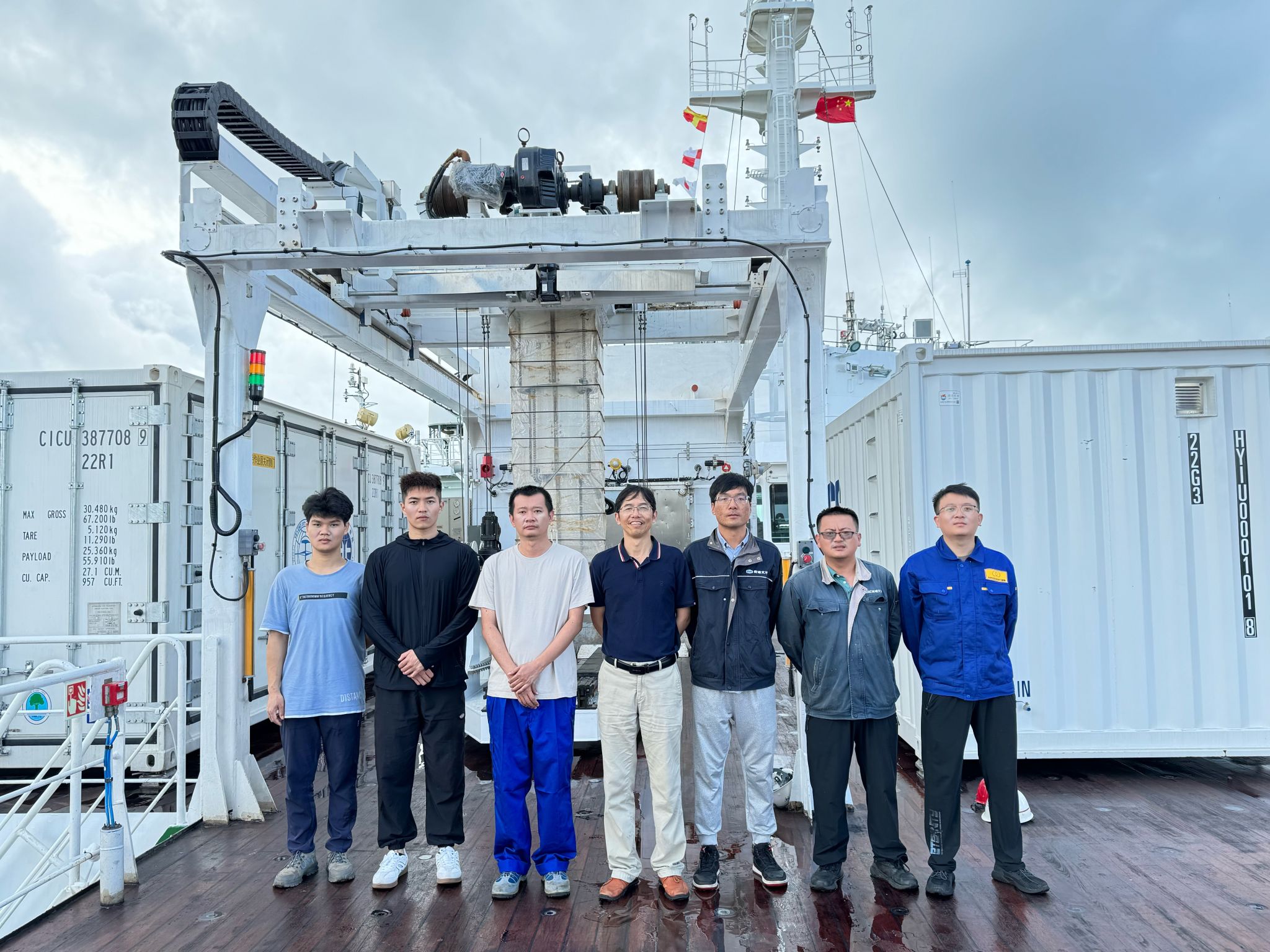 大洋鉆探船巖心自動化傳輸系統海試人員合影(左二為胡晨,左四為寧伏龍)
