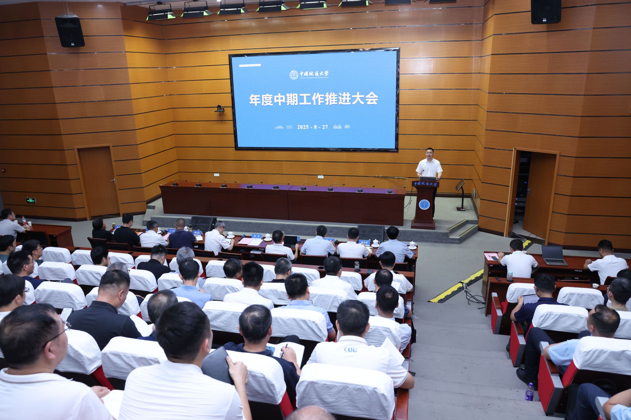 地大新聞網(wǎng)訊(記者 李銳欣)8月27日,我校召開年度中期工作推進大會。校黨委書記劉杰主持會議,校長李建威作工作部署,校領(lǐng)導(dǎo)、黨委常委、校長助理及全體中層領(lǐng)導(dǎo)干部參會。