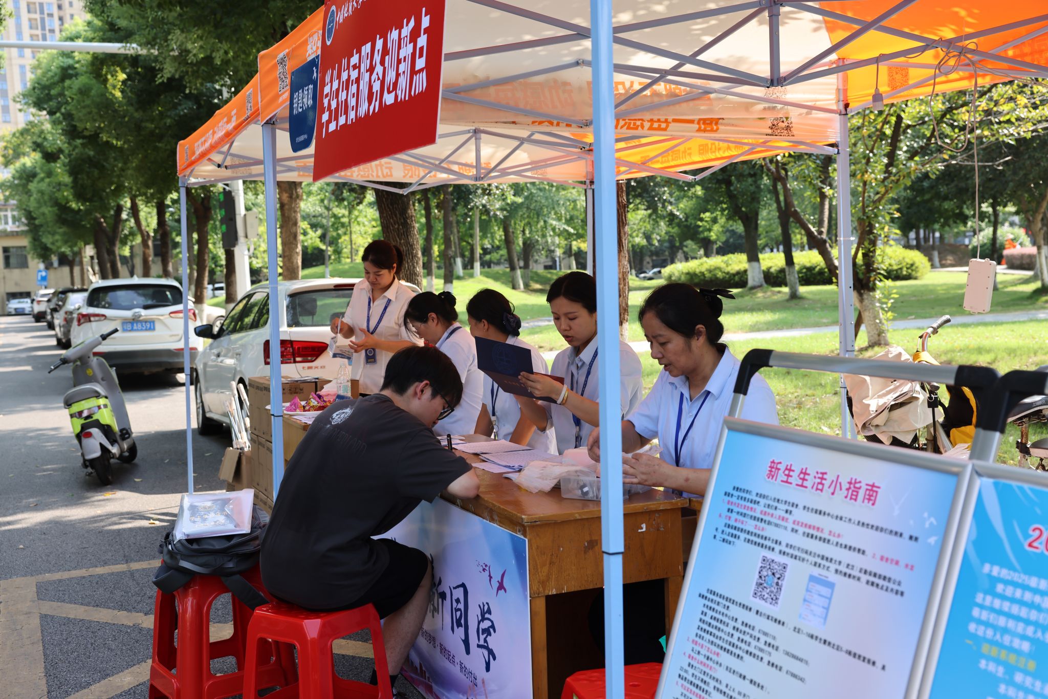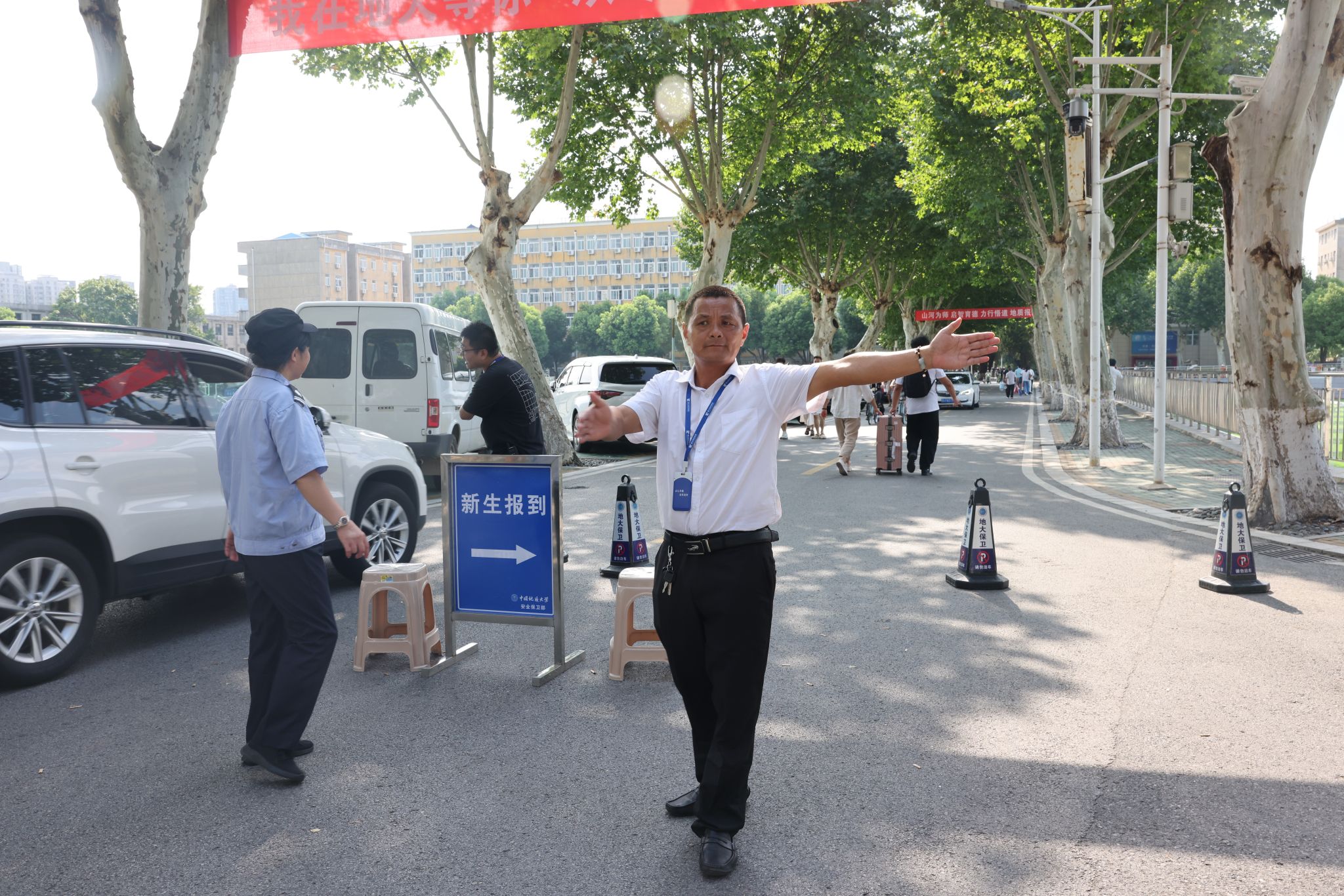 校園里,學生志愿者、后勤、保衛工作人員,為新生們提供周到服務。大家不辭辛苦指揮交通、搬運行李,引導新生辦入學手續,帶著大家熟悉校園。他們是最可靠的“導航標”、是化解燥熱的“清涼驛站”、是新生故事的“第一頁”。