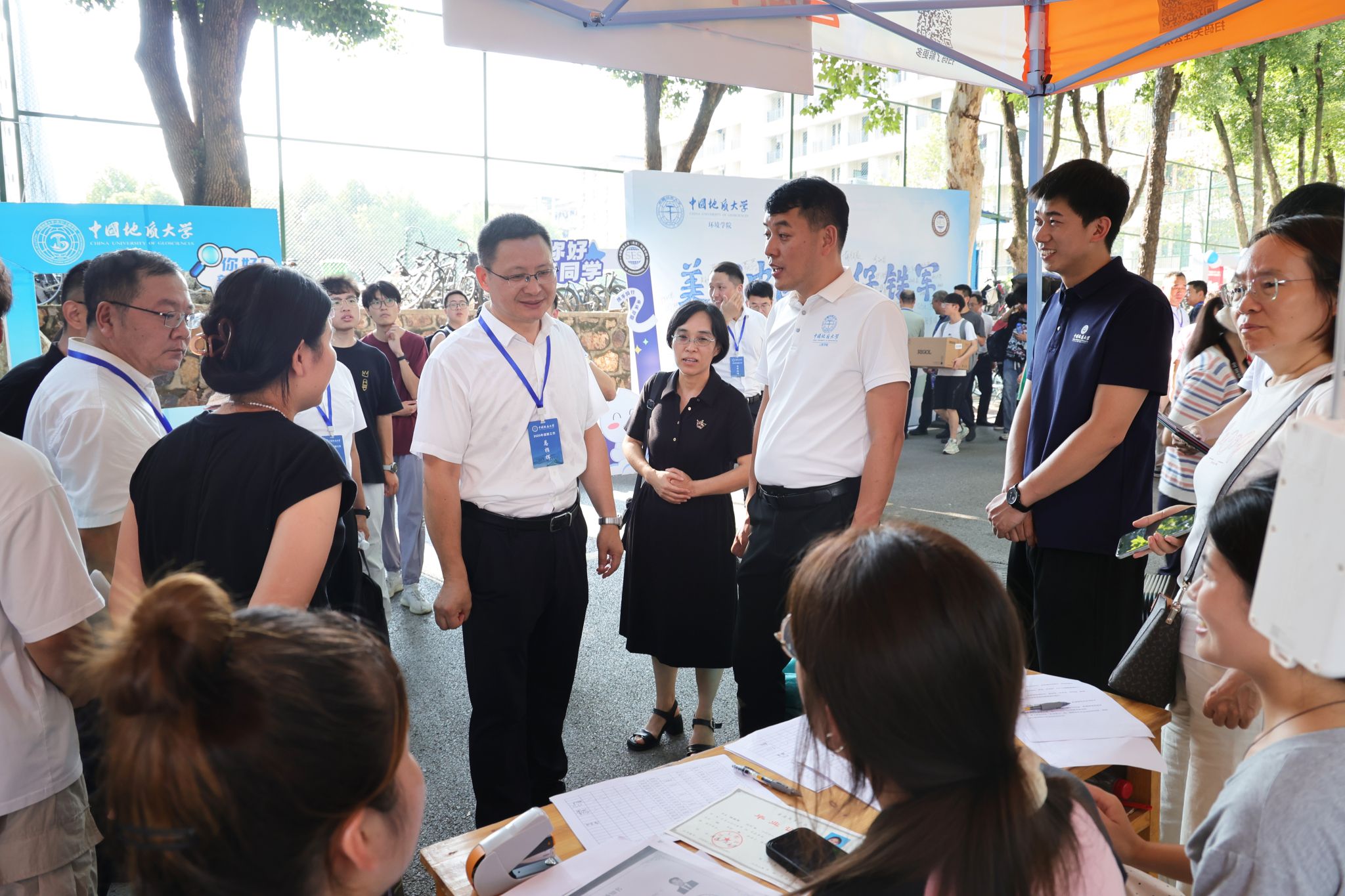 9月1日下午、9月2日,校領導劉杰、李建威、王林清、唐忠陽、王甫、王文起,黨委常委、組織部部長陳文武,校長助理蔣少涌,先后前往南望山校區和未來城校區,實地查看迎新工作進展,并走進新生宿舍,與學生和家長進行交流。他們關切地詢問同學們飲食是否習慣、住宿是否舒適,并仔細了解大家入學后的適應情況和個人需求。他們代表學校歡迎新生們,表示學校將全力保障同學們在校期間的學習與生活,為大家創造良好的成長環境。同時他們也勉勵新生盡快融入校園,珍惜大學時光,學好專業、鍛煉能力,在地大這片沃土上勇敢追夢、踏實成長。