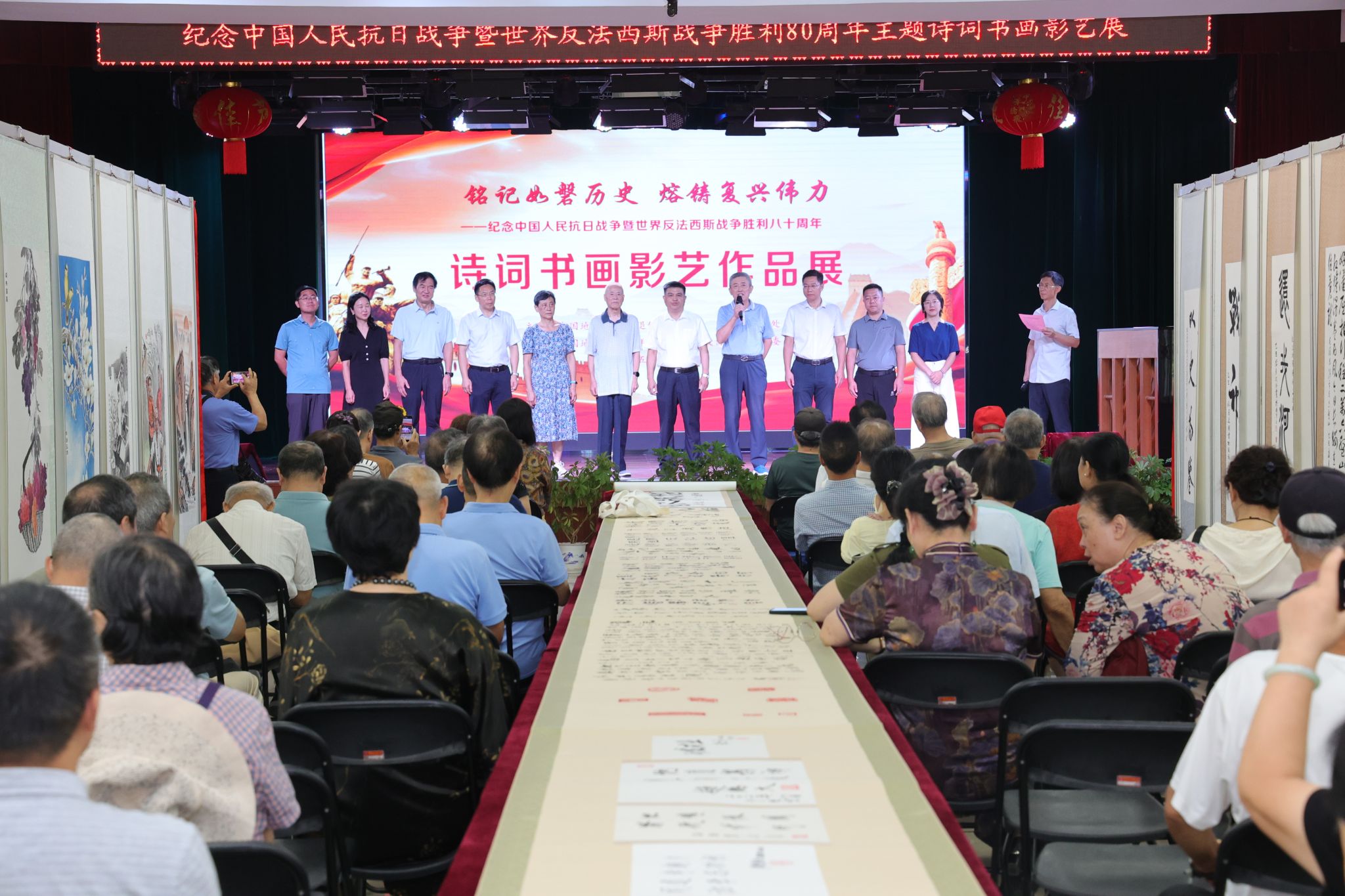 本次展覽共匯集了146件詩(shī)詞、書畫、攝影、手工藝作品,這些作品以筆為戎、以墨寄情,回望烽火歲月,緬懷革命先烈,用創(chuàng)作表達(dá)了對(duì)和平的珍惜和對(duì)未來(lái)的展望。