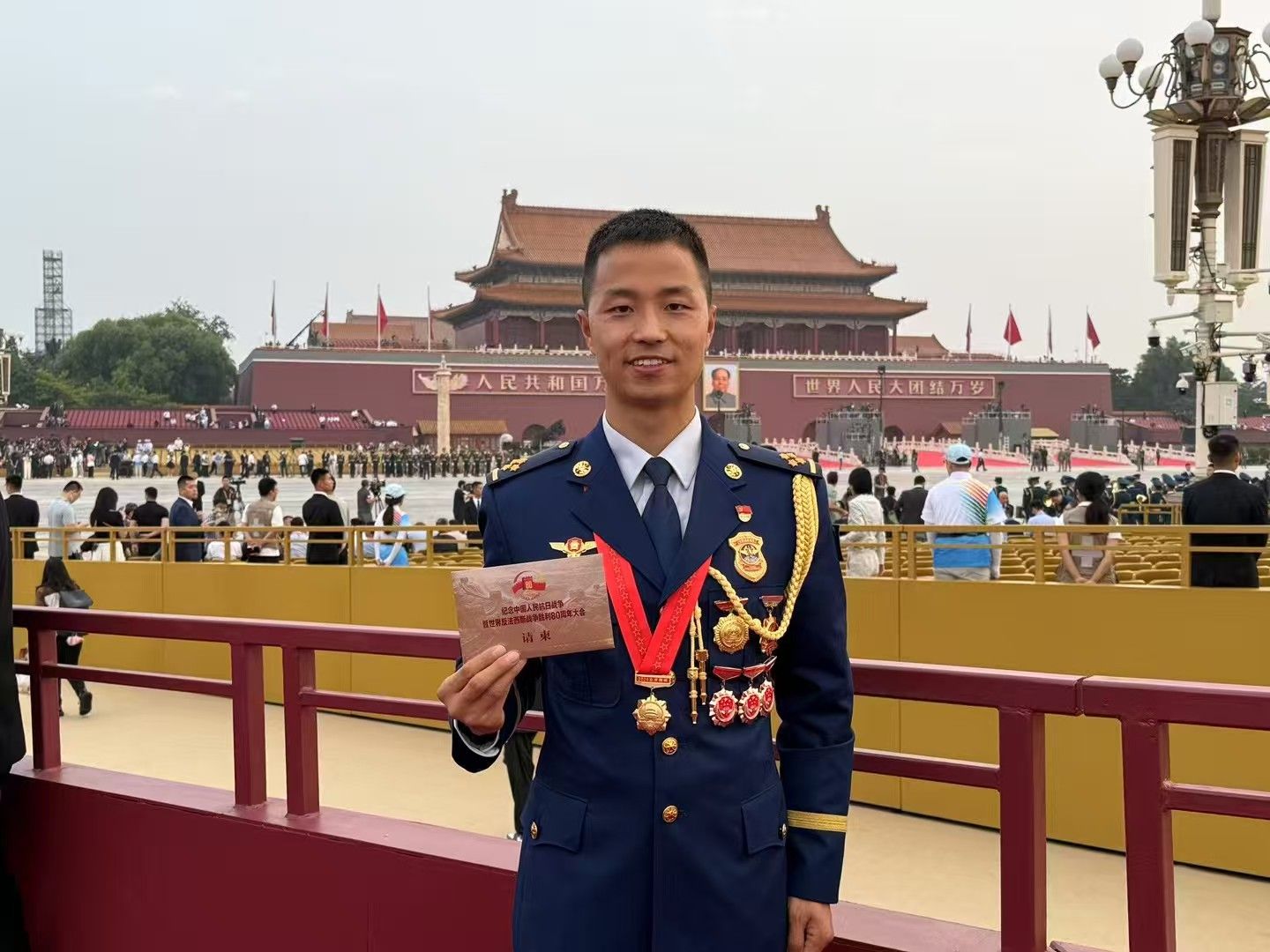 地大新聞網訊 9月3日,紀念中國人民抗日戰爭暨世界反法西斯戰爭勝利80周年大會在北京天安門廣場隆重舉行。我校體育學院2015屆校友李戰坤受邀觀禮閱兵。李戰坤說:“作為一名地大畢業生,能夠以觀禮嘉賓身份參與紀念中國人民抗日戰爭暨世界反法西斯戰爭勝利80周年大會,我感到無比光榮和自豪,將以更加飽滿的熱情、更加堅定的信念傳承校訓精神,不負學校、老師的培養。”