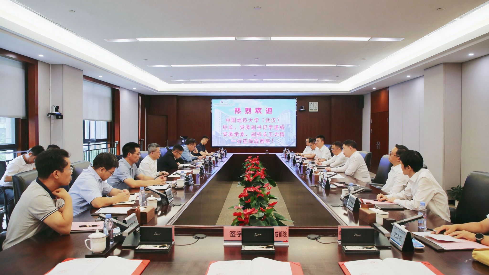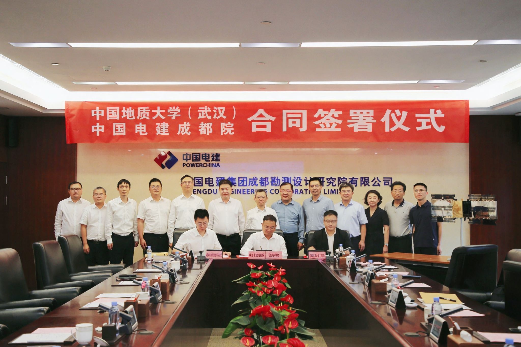 地大新聞網訊 9月5日下午,我校與中國電建集團成都勘測設計研究院有限公司(以下簡稱:成都院)在成都舉行衛星研制合同的簽署儀式。成都院總經理張世殊,副總經理李明、侯彥碩,我校校長李建威教授、副校長王力哲教授參加儀式。