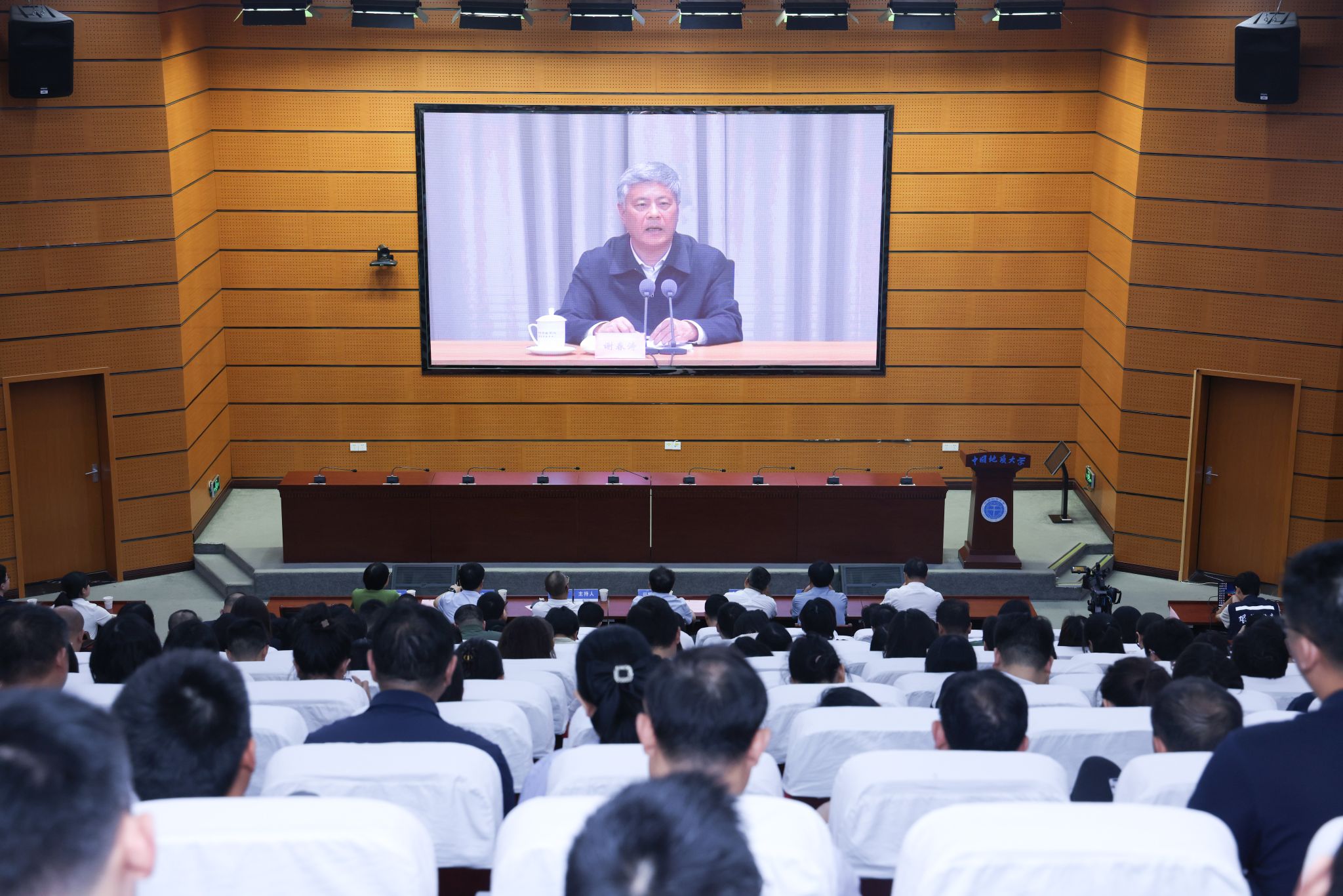 地大新聞網(wǎng)訊(記者 焦思勤)9月18日,我校組織開展2025年黨員基本培訓(xùn)集中大課,采取集中觀看視頻方式學(xué)習(xí)中共中央黨校(國家行政學(xué)院)謝春濤同志講授的《中國共產(chǎn)黨與中華民族偉大復(fù)興》專題輔導(dǎo)報告。學(xué)校近9千名師生黨員在兩校區(qū)67個會場參加學(xué)習(xí)。武漢紡織大學(xué)原黨委書記田輝玉、省委教育工委組織處四級調(diào)研員楊作成到校調(diào)研指導(dǎo)。