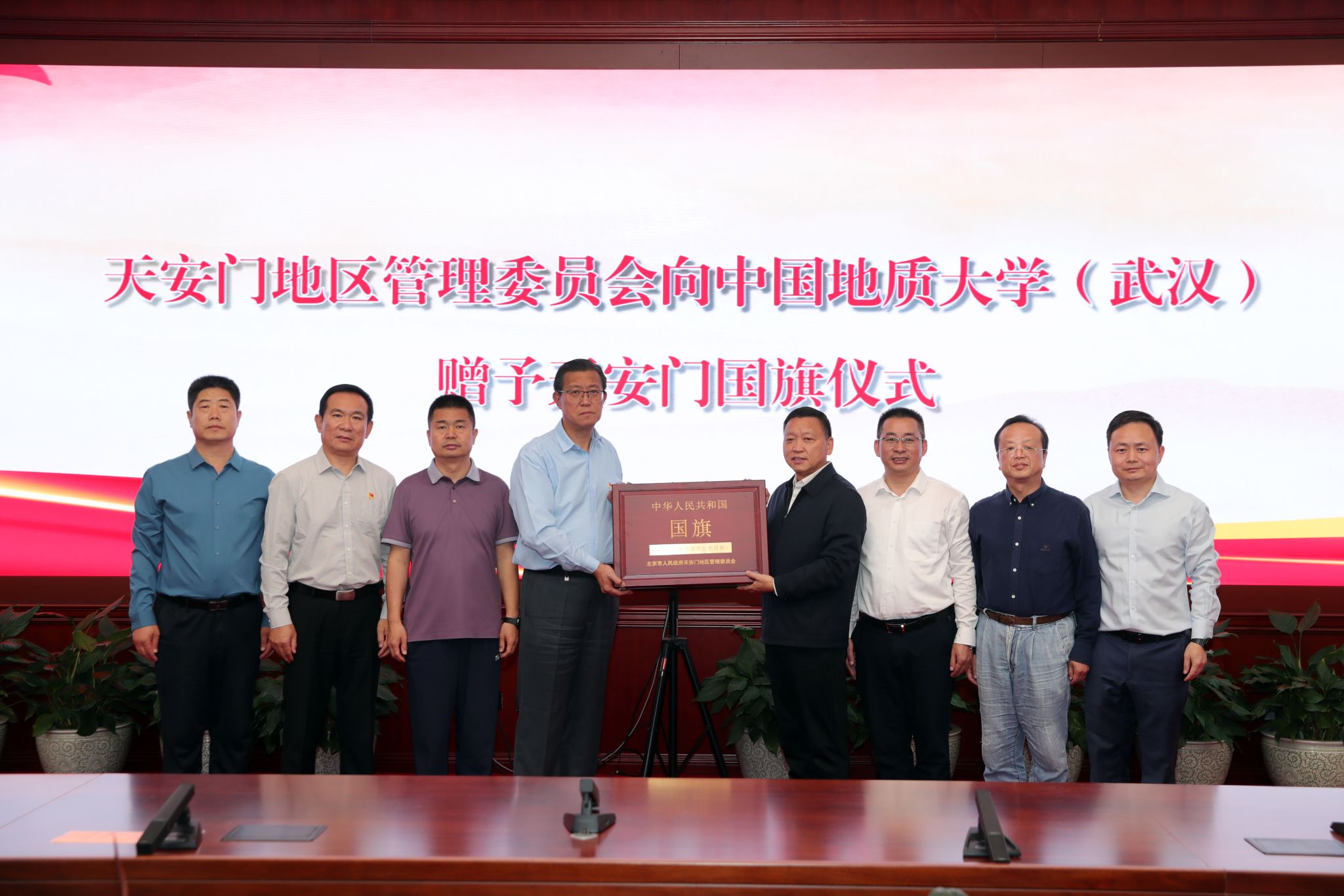 地大新聞網訊(記者 張玉賢)9月25日,北京市人民政府天安門地區管理委員會向中國地質大學(武漢)贈送天安門國旗。贈予儀式在天安門地區運行調度中心舉行,天安門地區管委會黨組成員、副主任(正局長級)姚輝向學校贈送國旗,黨委副書記王林清代表學校接收國旗、簽署《國旗贈予協議》,黨委宣傳部、圖書檔案與文博部、資產經營公司相關同志參加贈旗儀式。