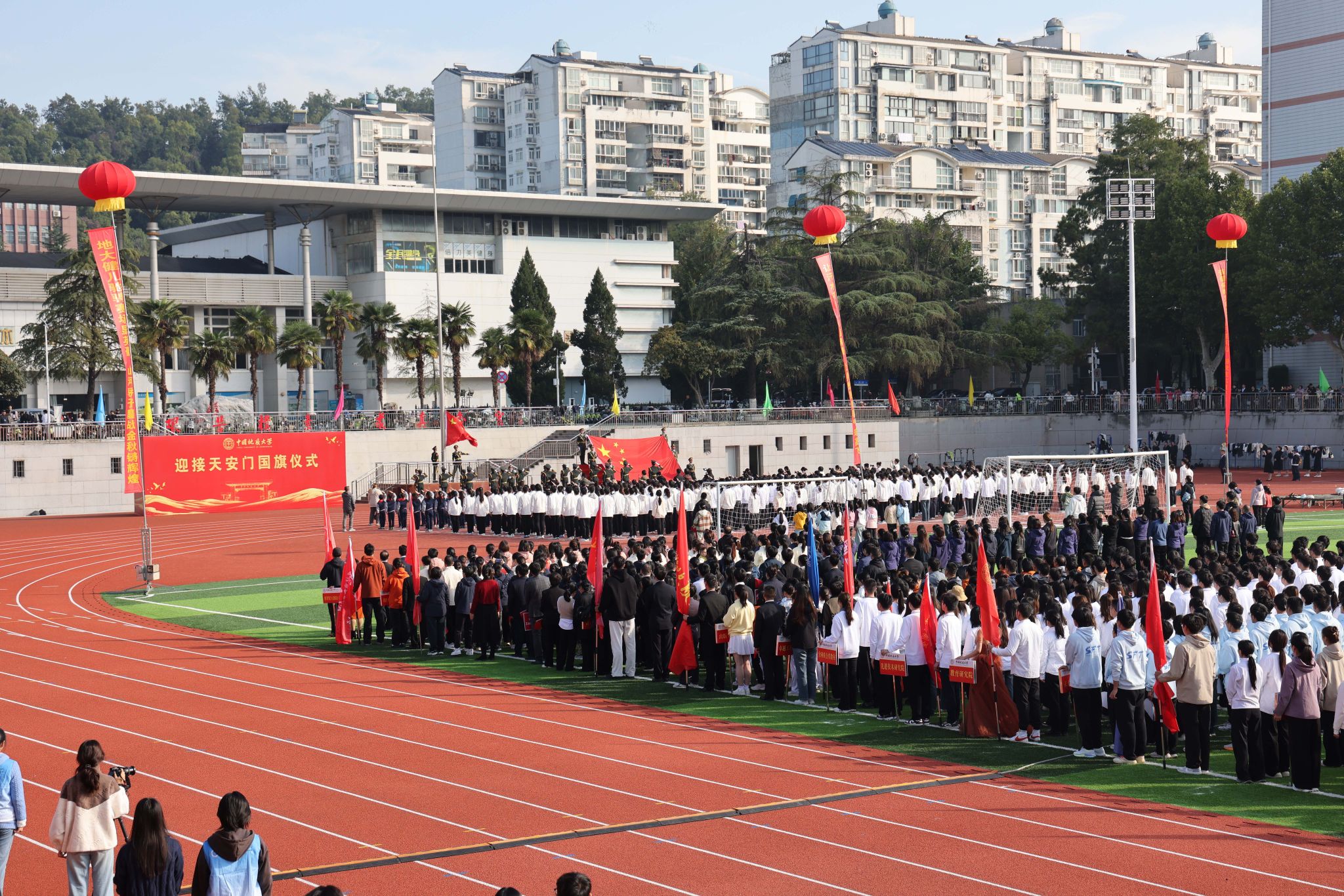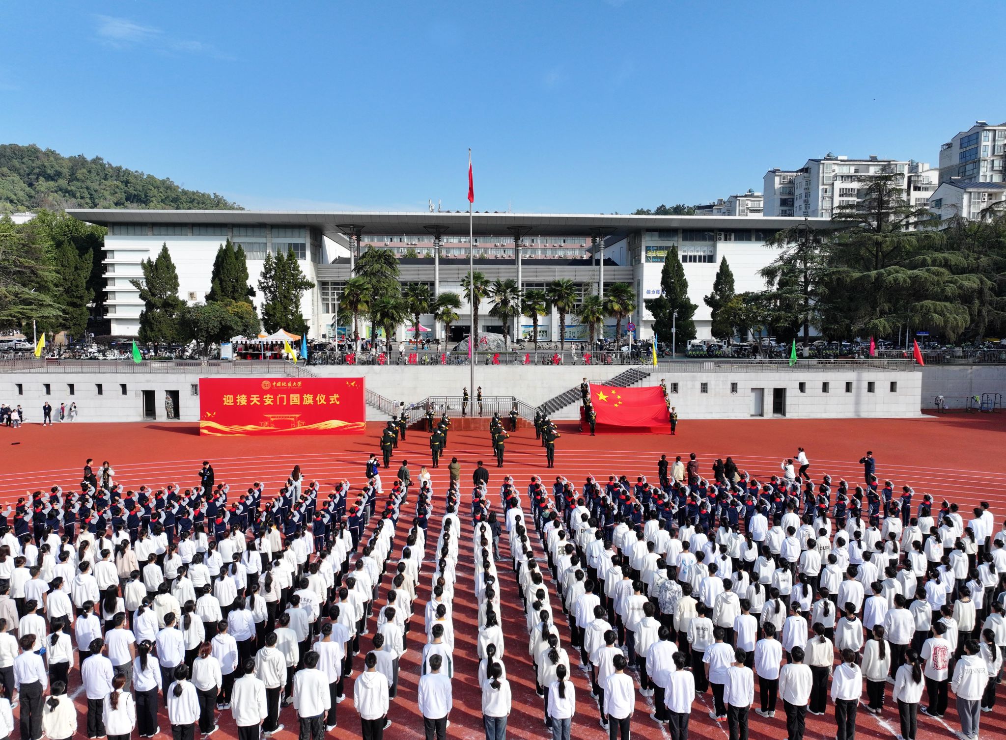 10月24日,我校在南望山校區西區運動場隆重舉行迎接天安門國旗儀式。全體在校校領導,各學院、管理與服務機構相關負責人,以及師生代表參加儀式。