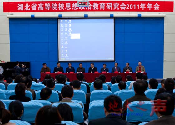11月13日,湖北省高校思想政治教育研究會2011年年會在荊門召開。教育部黨組成員、國家教育行政學院院長、湖北省高校思想政治教育研究會會長顧海良,湖北省教育廳副廳長孟慶金,荊門市市委常委、宣傳部長汪聯舫,湖北省高校思想政治教育研究會常務副會長兼秘書長、校黨委書記郝翔及全省70多所高校的200余名代表參加了會議。