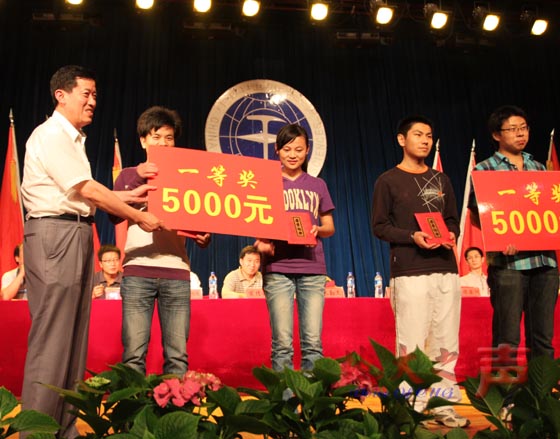 二、校級研究生先進集體、先進研究生黨支部,校級優秀研究生標兵、校優秀研究生黨員、優秀研究生、優秀研究生干部等一批先進集體和個人受到表彰。圖為校黨委書記郝翔為獲第七屆全國研究生數學建模競賽全國一等獎的團隊頒獎。