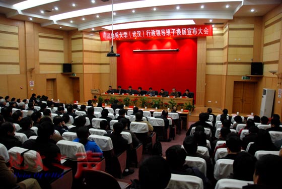 一、12月29日,我校召開行政領導班子換屆宣布大會。圖為大會現場。