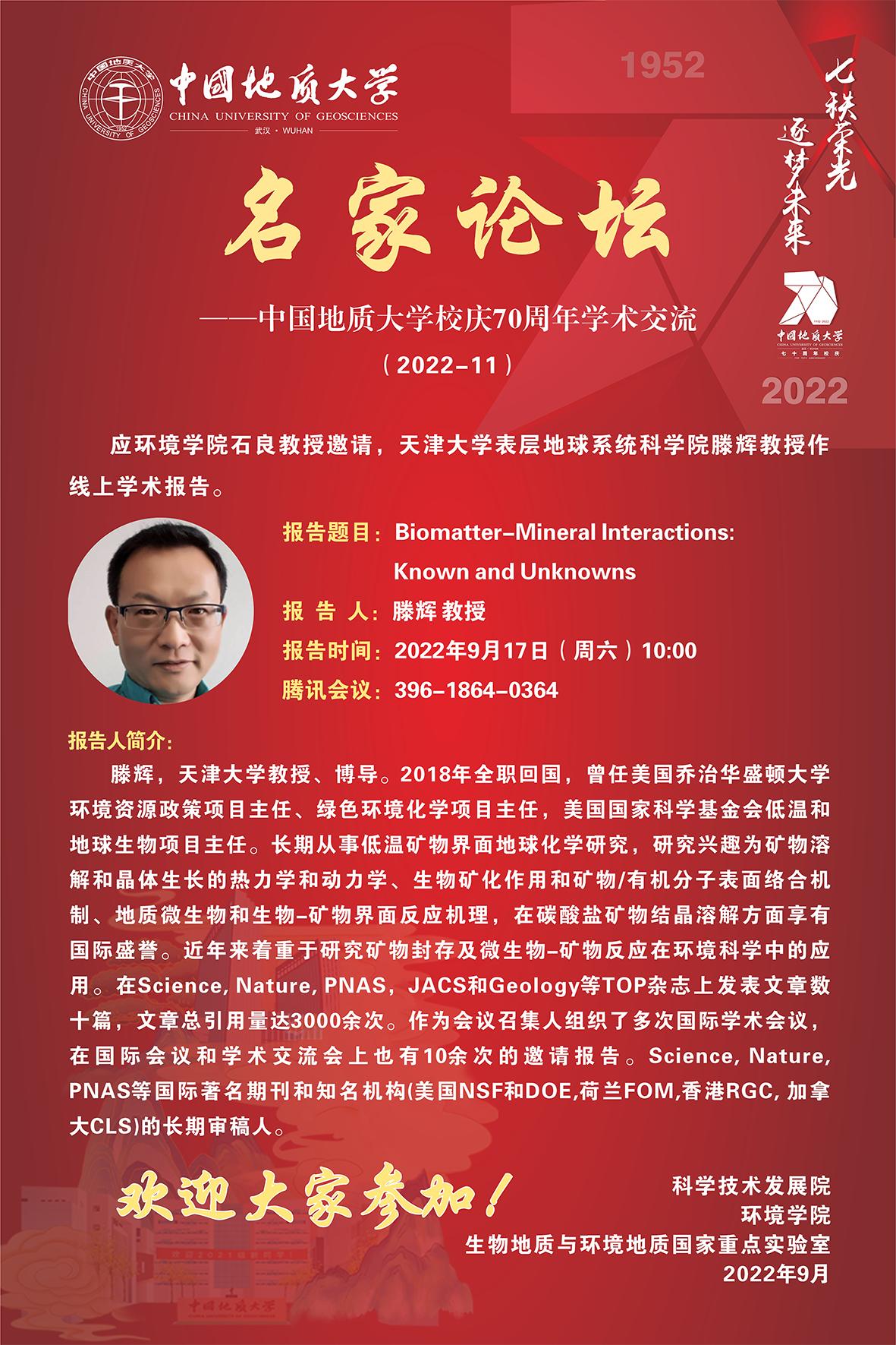 【9月17日】名家論壇:天津大學表層地球系統科學院滕輝教授學術報告