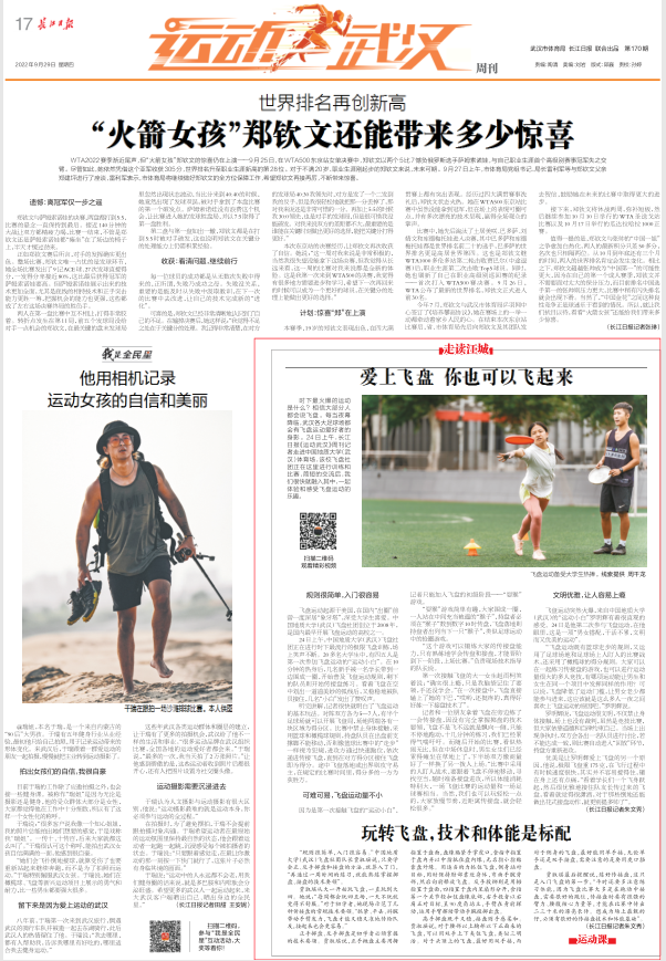 “飛盤運動既有籃球走步的規則,又運用了足球場地和足球場上人盯人的比賽戰術,還采用了橄欖球的得分規則。大家可以在一起練習傳接盤的游戲,也可以進行運動量很大的多人競技,有哪項運動能讓男生和女生在同一個項目中發揮同樣的作用?可以說,飛盤降低了運動門檻,讓男女老少都能參與進來,這應該就是這么多人一夜之間喜歡上飛盤運動的原因吧。”羅明輝說。