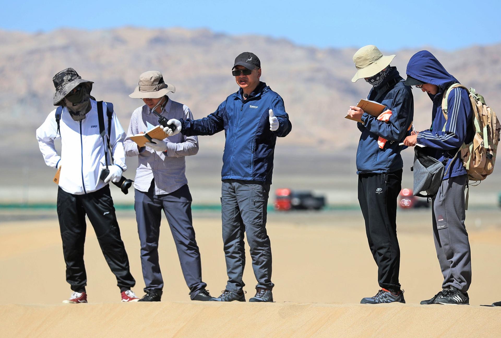 ▲肖龍教授(中)在柴達木盆地進行類火星地貌考察。中國地質大學(武漢)供圖