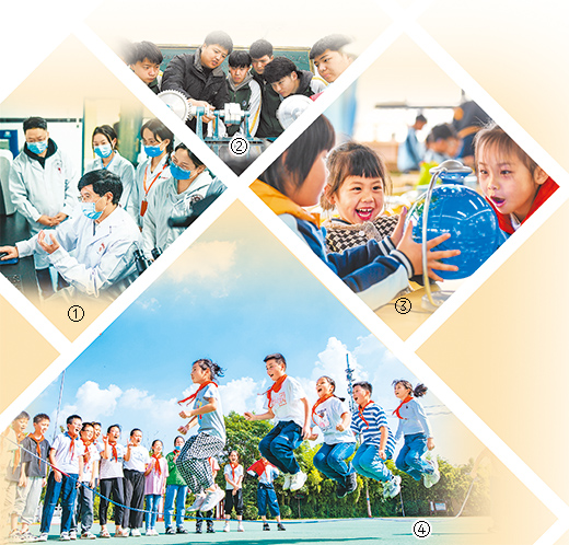 圖④:江蘇省宿遷市宿城區古城實驗小學的學生在歡快地跳繩。