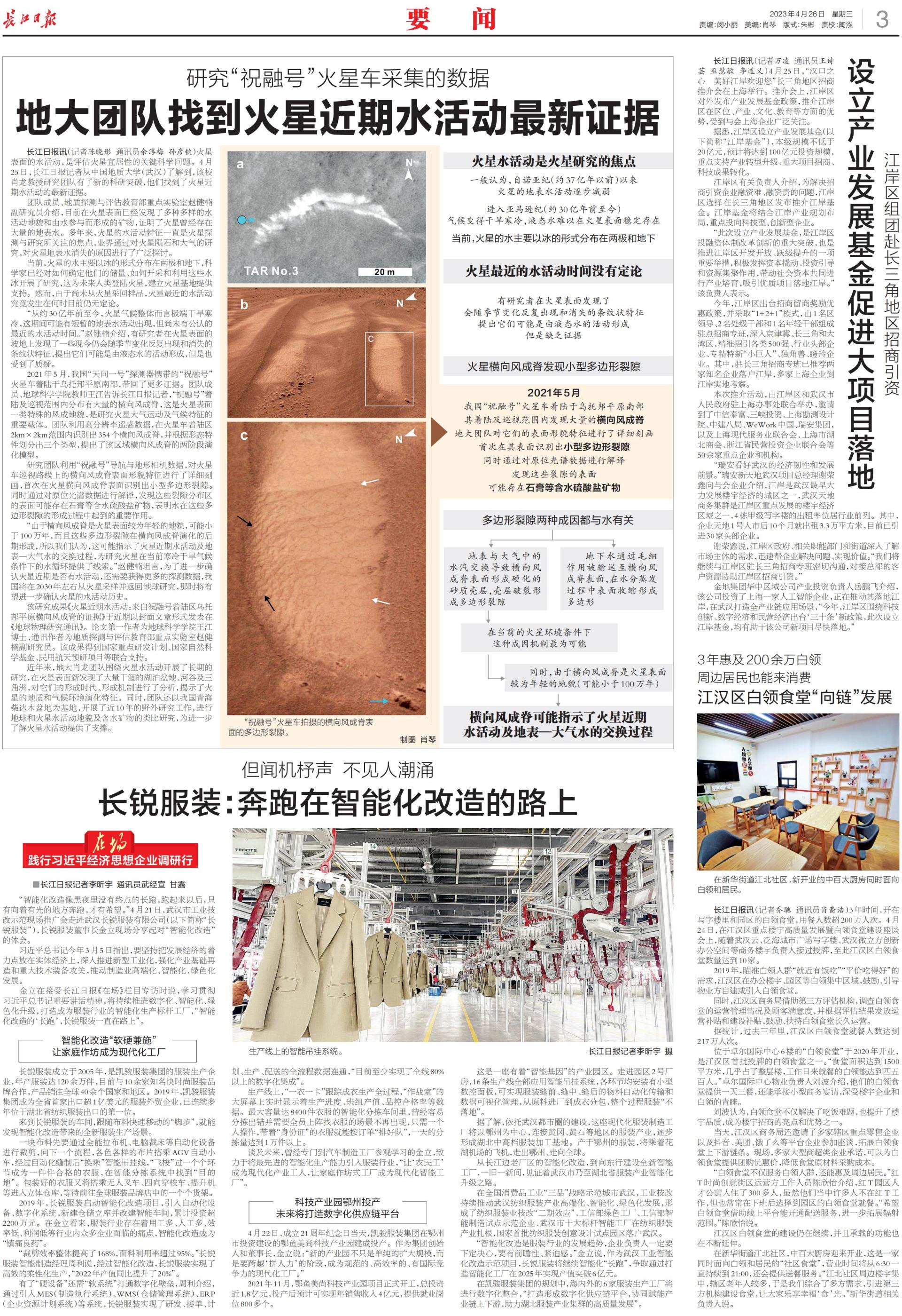 鏈接:長江日報 - 地大團隊找到火星近期水活動最新證據 (cjn.cn)