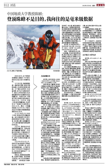 陳剛說,珠峰既是地理高峰,也是學術高峰。“登頂珠峰不是目的,我心向往的是毫米級數據。”