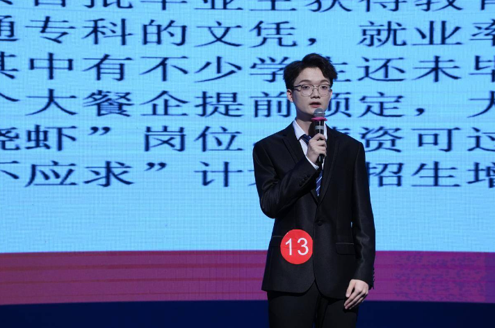 在自備主持環(huán)節(jié),選手們以鄉(xiāng)村振興、美食美景、校園文化等主題進行主持展示。即興搭檔環(huán)節(jié)則考驗選手們的思辨能力、語言組織能力以及與搭檔的合作。15名選手們隨機抽簽分為7組,圍繞所抽選題進行即興主持。