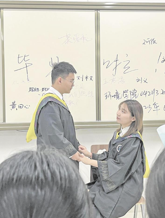疫情防控期間,兩人一直都未謀面?!暗W(wǎng)課讓我們有更多時(shí)間在網(wǎng)上交流,和大多數(shù)網(wǎng)戀情侶一樣,我們是相互陪伴日久生情?!辈套友踊貞洠咔楹棉D(zhuǎn)后,兩人開(kāi)始討論未來(lái)。蔡子延大一時(shí)就明確目標(biāo)——保研,這讓劉念也堅(jiān)定了繼續(xù)深造讀研的信念,兩人便商量好要努力考研到同一所學(xué)校。