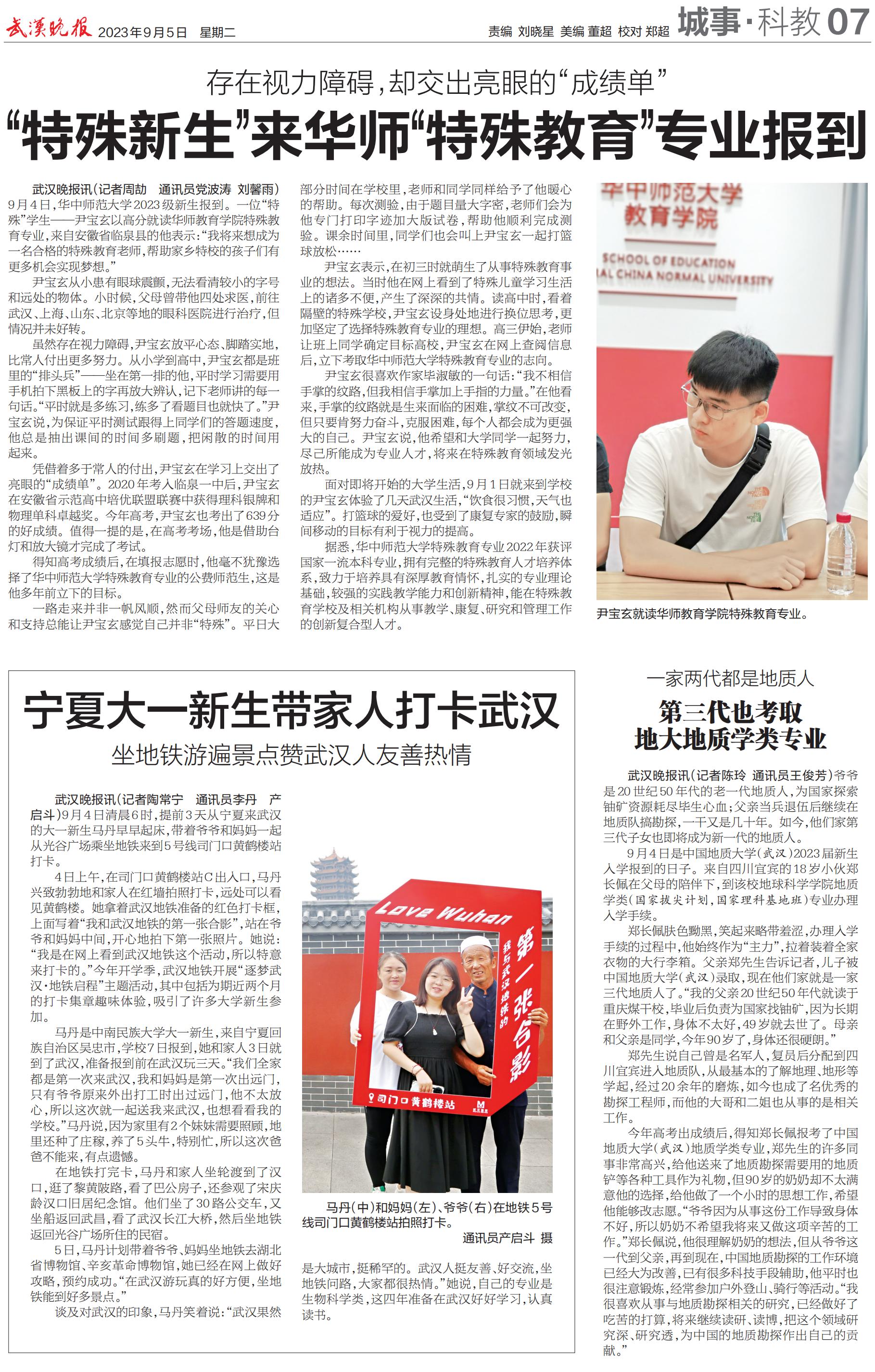 鏈接:武漢晚報 - 第三代也考取地大地質學類專業 (cjn.cn)