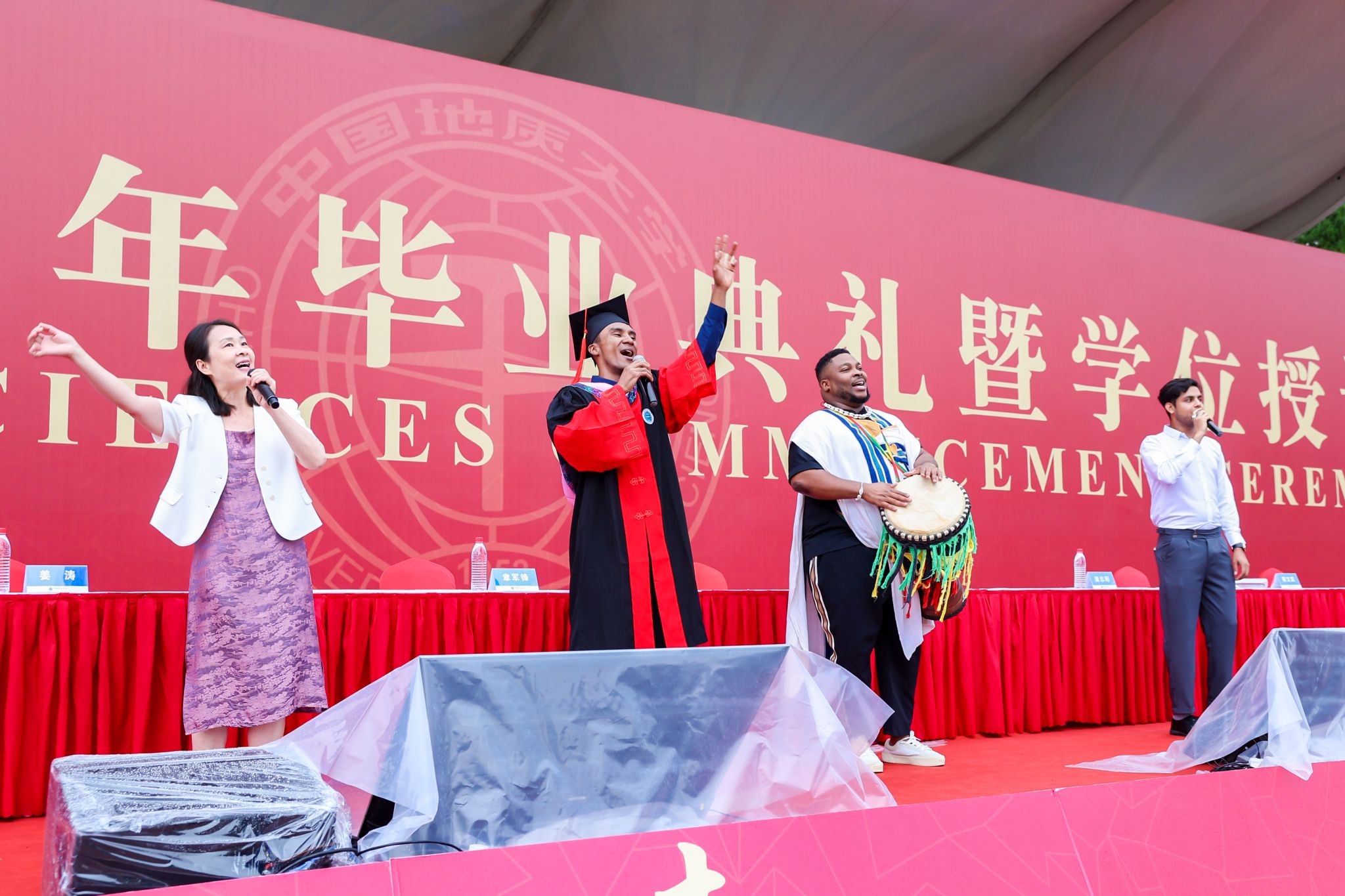 湖北日報訊(記者張歆、通訊員孫彥欽、實習生商嚳文)“洪湖水呀,浪呀嘛浪打浪啊,洪湖岸邊,是呀嘛是家鄉啊……”6月22日,中國地質大學2025年畢業典禮上,中國地質大學(武漢)數學與物理學院教師陳琦麗和馬達加斯加留學生宋多喜、貝寧留學生王強、巴基斯坦留學生莫哈徳一同演繹《洪湖水浪打浪》,深情的旋律動人心扉。