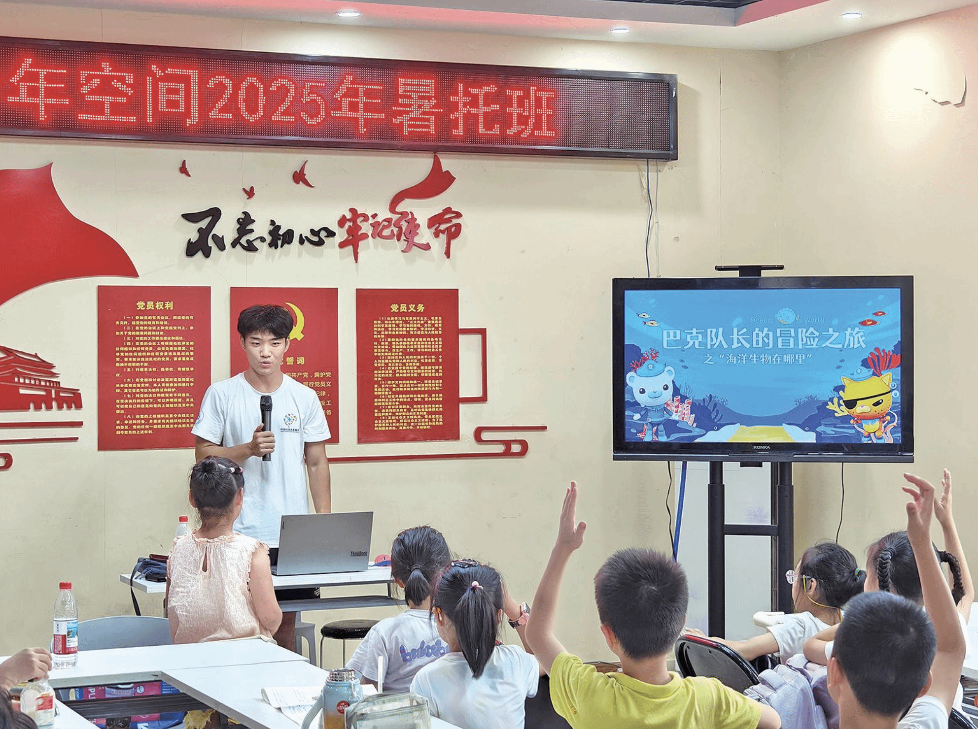 “海洋動力與化學”課堂上,潮汐發電原理的演示裝置前總圍著最密集的小腦袋。實踐團成員發現,孩子們對“海洋能量”的理解早已超越“海水會漲潮”的初級認知,開始思考“如何讓大海的力量為地球降溫”。