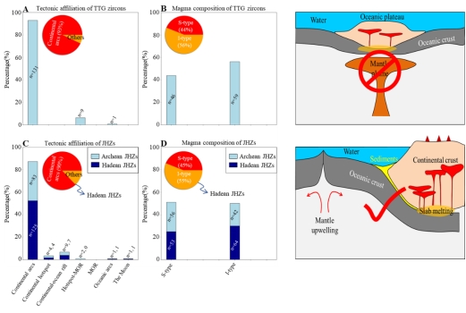 板塊構(gòu)造是地球區(qū)別于其他星球、具有蓬勃生命力的關(guān)鍵因素之一,也是尋找類地宜居行星的重要標(biāo)志。破譯地球早期地殼組成和形成的大地構(gòu)造背景是回答板塊構(gòu)造啟動時限及板塊構(gòu)造樣式如何隨時間推移而演變的關(guān)鍵;但由于后期地質(zhì)作用的疊加不斷破壞,造成冥古宙地殼巖石很難保存至今,給上述問題的解答帶來了嚴(yán)峻挑戰(zhàn)。碎屑鋯石,作為冥古宙唯一具有精確定年的物質(zhì)記錄,為揭示其形成的構(gòu)造-巖漿系統(tǒng)背景提供了關(guān)鍵窗口。雖然冥古宙碎屑鋯石已在全球約15-20個地點被發(fā)現(xiàn),但其中95%以上的鋯石來自澳大利亞Yilgarn克拉通的Jack Hills地區(qū)。