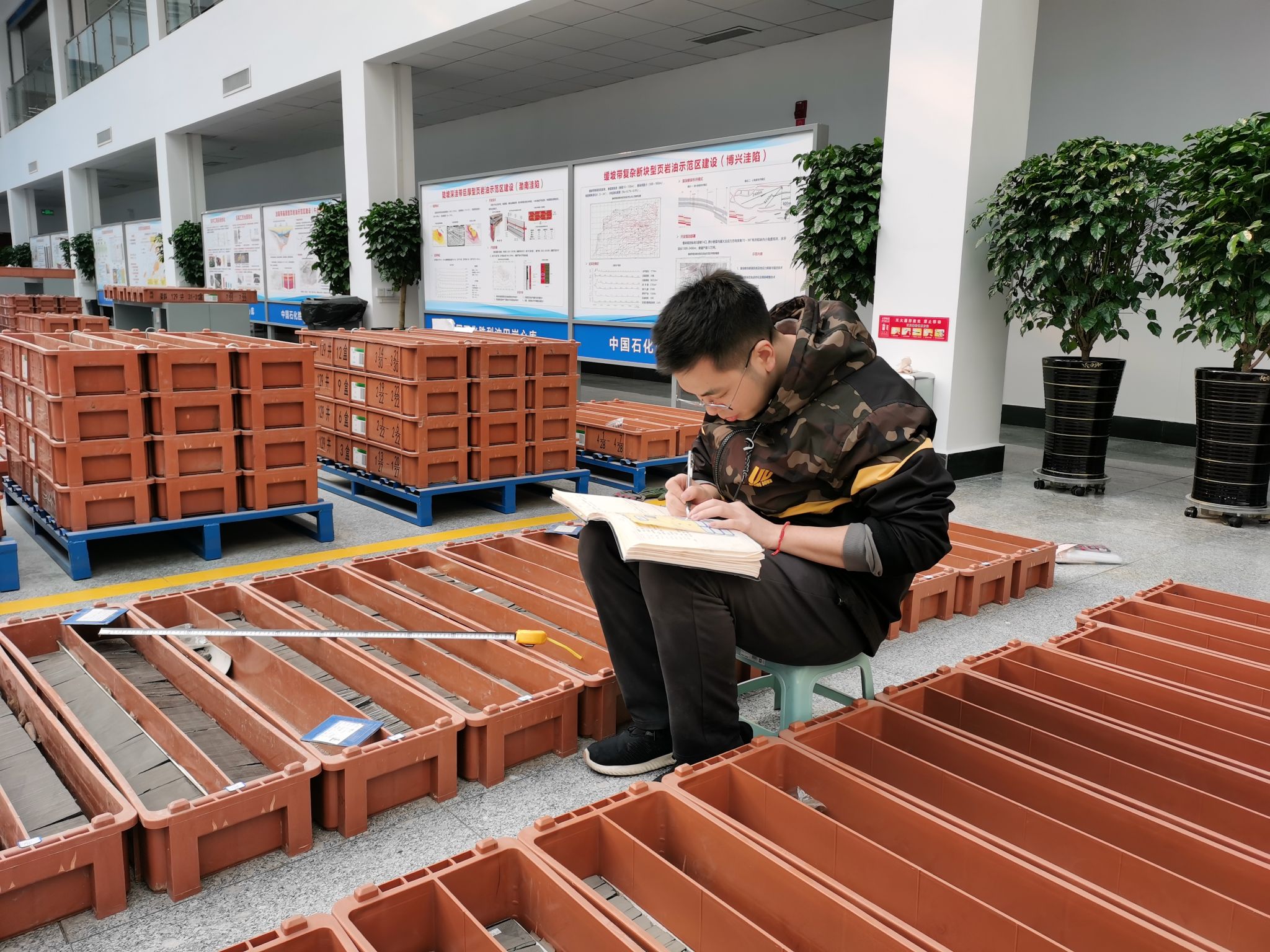 茍啟洋在中石化勝利油田研究院整理巖芯