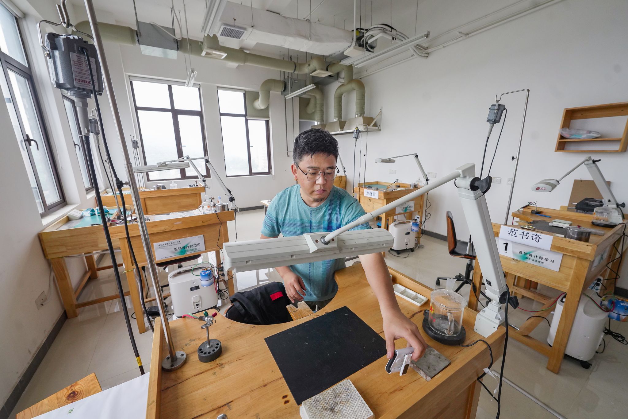 實(shí)驗(yàn)室安全是一切工作根本。由于珠寶專(zhuān)業(yè)的特殊性(高危險(xiǎn)設(shè)備,軋機(jī),壓片機(jī),卷輪機(jī),天然氣,各類(lèi)化學(xué),腐蝕性酸液),每逢國(guó)家、省市級(jí)或者學(xué)校開(kāi)展的實(shí)驗(yàn)安全檢查,首飾系實(shí)驗(yàn)室是必定檢查的基層單位。任開(kāi)作為分管實(shí)驗(yàn)室安全的系副主任,堅(jiān)持每年舉辦兩次全院師生的集體安全教育。在平時(shí)工藝實(shí)踐課程中以身作則,除了開(kāi)展正常的專(zhuān)業(yè)知識(shí)、講授制作實(shí)踐外,時(shí)刻關(guān)注課堂上20多名學(xué)生的安全操作,尤其是當(dāng)學(xué)生用天然氣等高危設(shè)備時(shí)都格外關(guān)注。到目前為止,任開(kāi)每年200多課時(shí)的專(zhuān)業(yè)實(shí)踐課,沒(méi)有發(fā)生一起學(xué)生受傷事故。在任開(kāi)分管實(shí)驗(yàn)室的兩年多時(shí)間中,負(fù)責(zé)起草編制、修改優(yōu)化的實(shí)驗(yàn)室安全管理辦法100余條。通過(guò)對(duì)涉及2000平方米的實(shí)驗(yàn)室實(shí)行劃分區(qū)塊、落實(shí)分工、責(zé)任到人的管理體系,珠寶學(xué)院首飾系數(shù)次被評(píng)為校級(jí)實(shí)驗(yàn)室管理優(yōu)秀。
