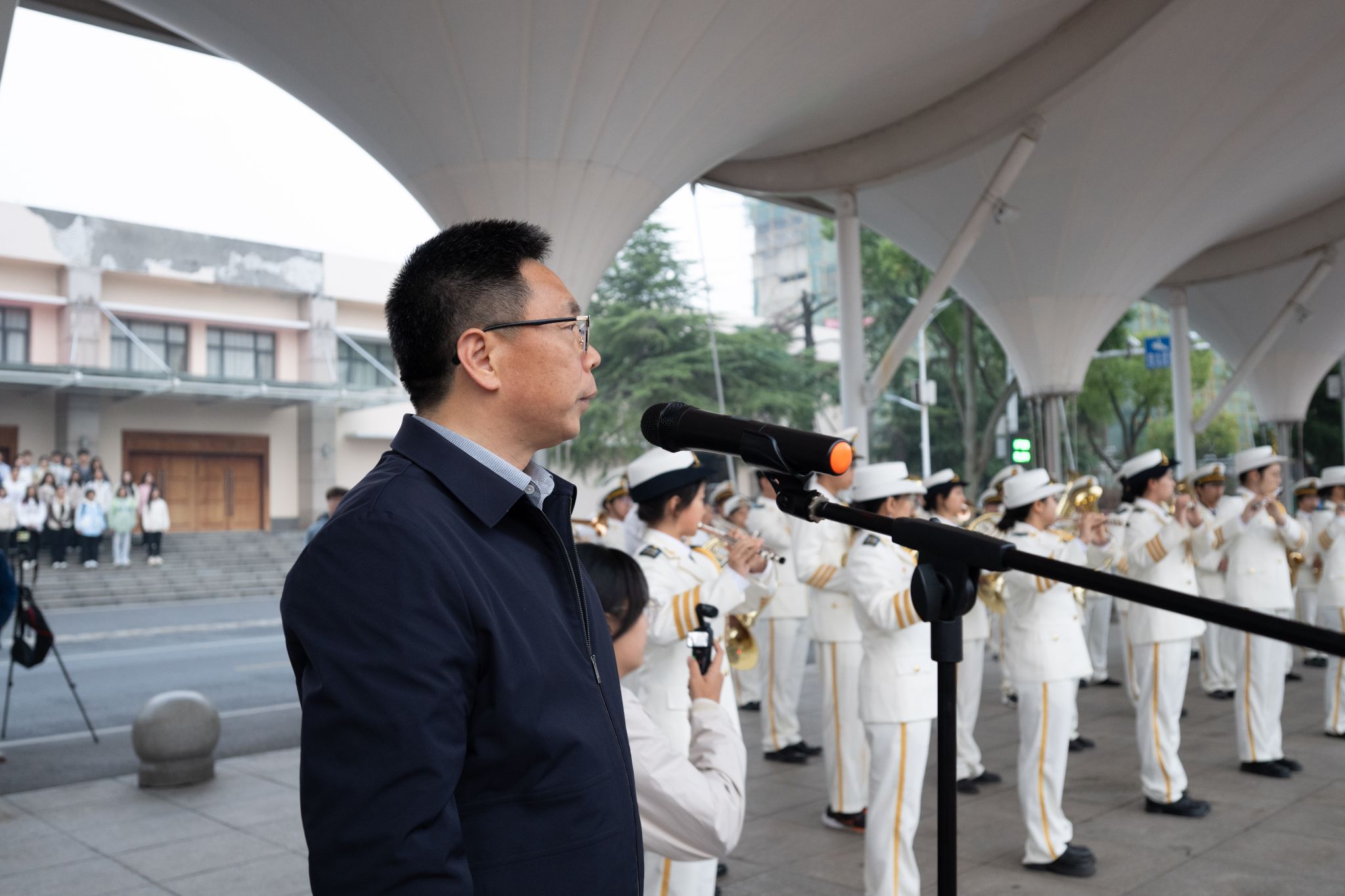 學(xué)校高度重視學(xué)生早鍛煉,校黨委副書記王甫現(xiàn)場(chǎng)觀摩早鍛煉并主持本學(xué)期第一次升旗儀式。自10月10日早鍛煉啟動(dòng)以來,本科生院、黨委宣傳部、校團(tuán)委等職能部門和廣播臺(tái)、場(chǎng)地管理中心、國(guó)旗班、軍樂團(tuán)等學(xué)生組織通力合作,有力保障早鍛煉順利進(jìn)行。各學(xué)院領(lǐng)導(dǎo)班子、輔導(dǎo)員老師積極出勤,陪伴學(xué)生成長(zhǎng)、關(guān)愛學(xué)生發(fā)展。