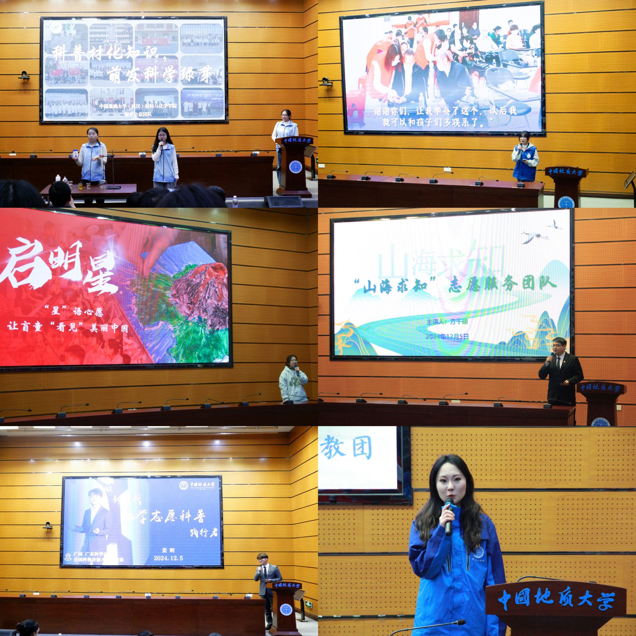 來自山中花兒愛心助學團、綠芽公益志愿服務隊、山海求知志愿服務團隊、啟明星盲校支教團、服務E時代志愿者協會、研究生支教團、地球科學學院博士生姜昕等志愿服務團隊和個人代表分享了志愿故事。