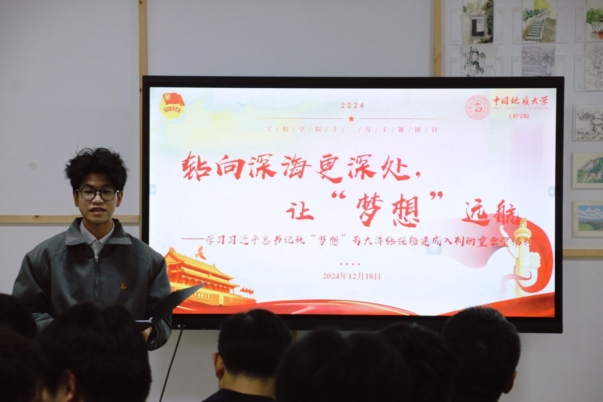 地大新聞網訊(通訊員 張怡悅 李想 陳文婷)為深入學習貫徹習近平總書記致“夢想”號大洋鉆探船建成入列的賀信精神,激勵團員青年立報國強國大志向、做挺膺擔當奮斗者,12月18日,我校12月示范性主題團日在工程學院舉行。校黨委副書記王甫,校團委、工程學院黨委和團委負責人,勘察與基礎工程系本碩博團員代表參加活動。活動還邀請了“夢想”號大洋鉆探船重要子系統建造者寧伏龍教授、孫嘉鑫副教授和胡晨博士參加分享。