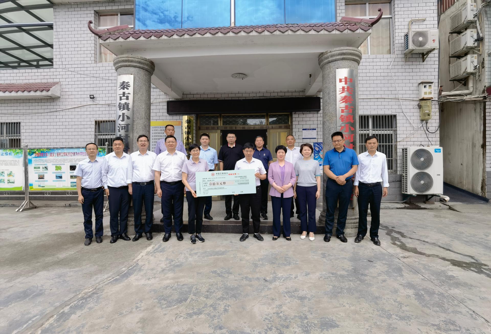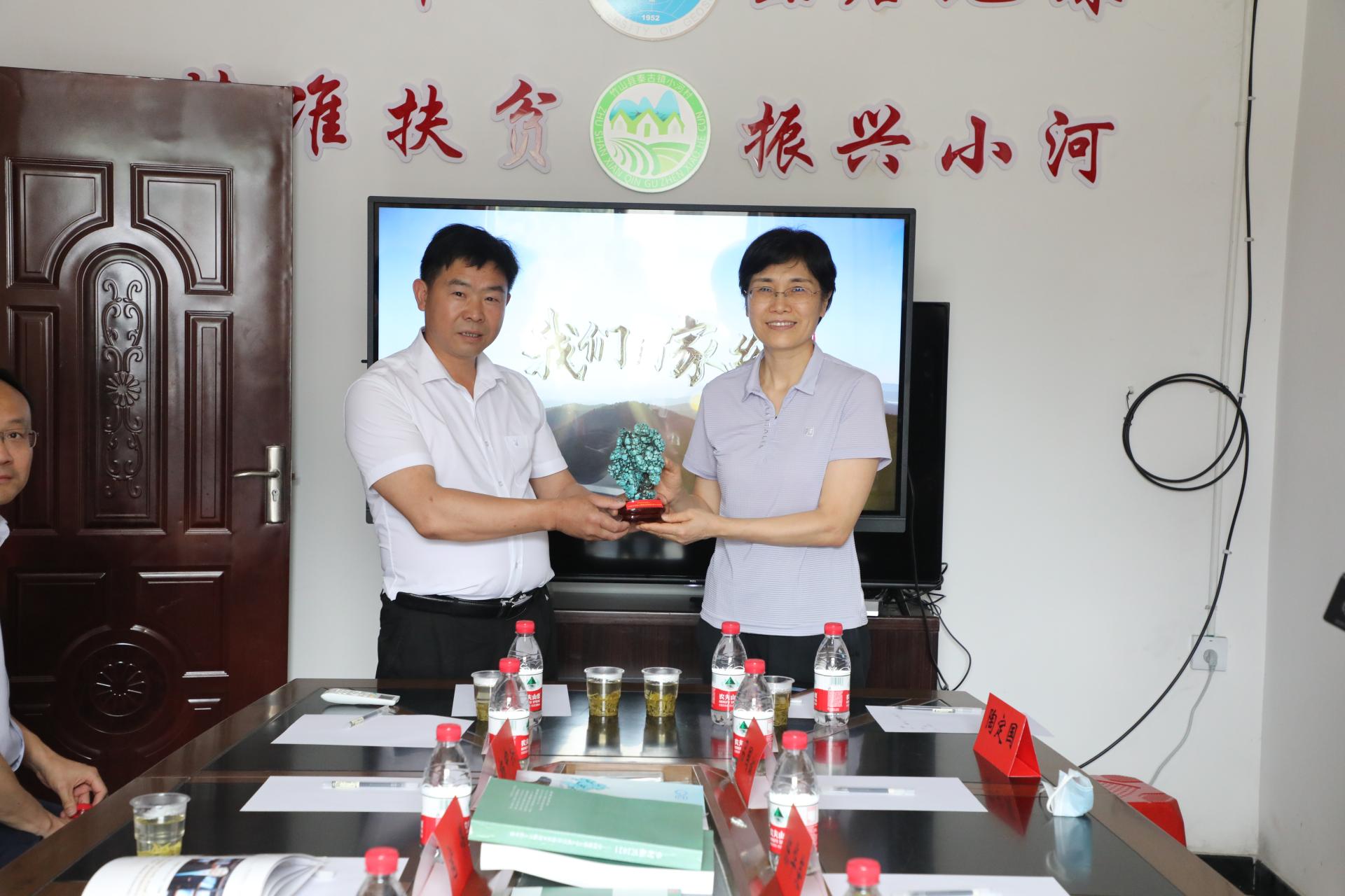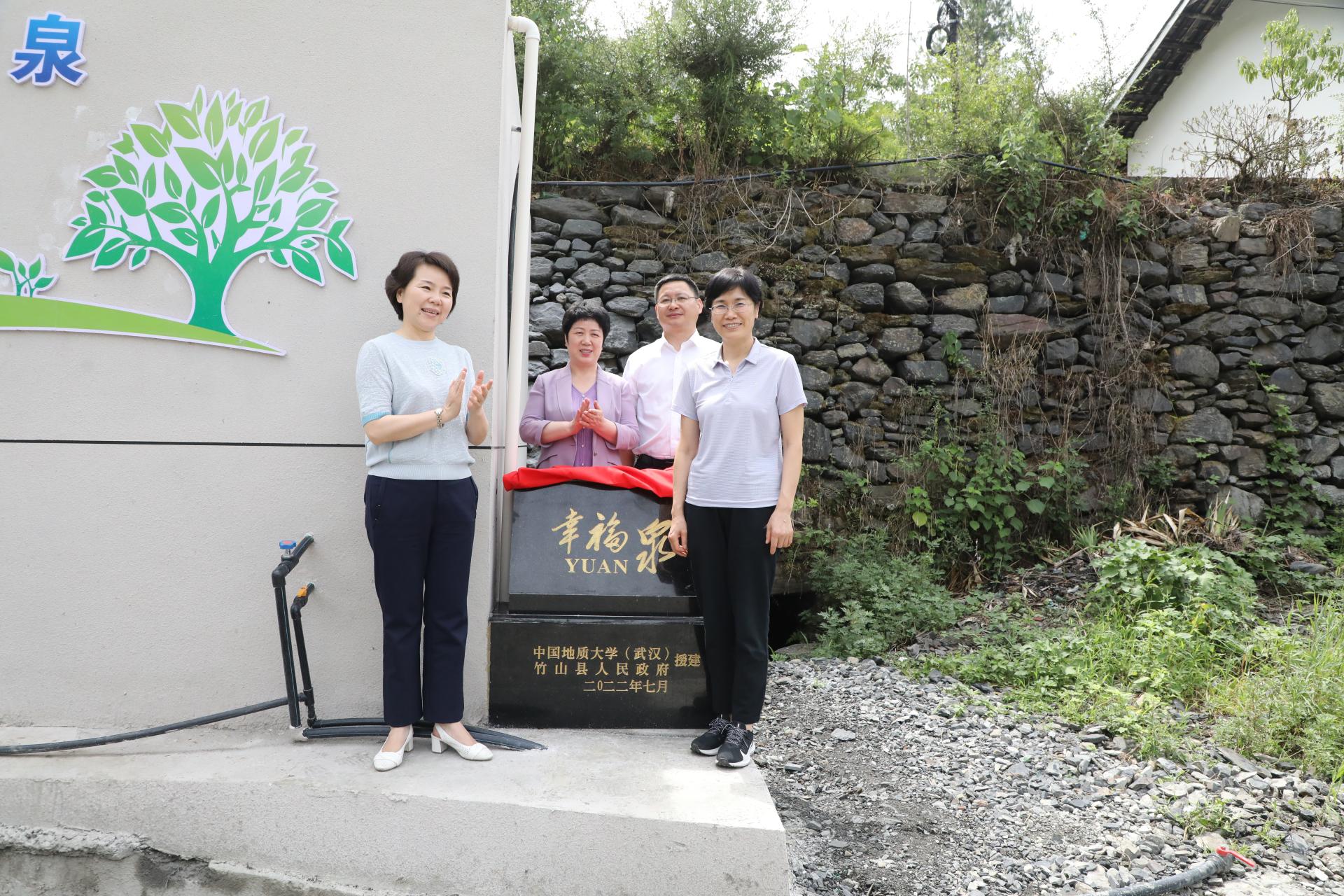在秦古鎮小河村,黃曉玫為我校和竹山縣人民政府共同援建的安全飲水工程揭牌,向該村捐贈鄉村振興發展基金10萬元,并看望慰問學校駐村工作隊隊員。小河村支部書記陶定國代表全村黨員群眾,對我校即將迎來的70華誕表示祝賀。